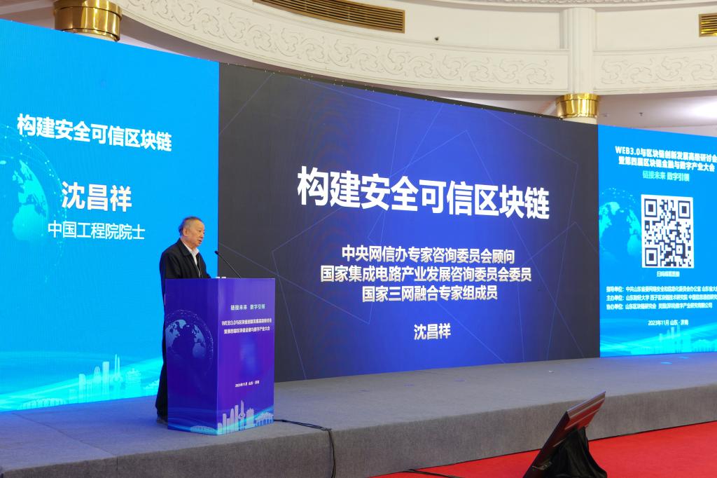 会上,中国工程院院士沈昌祥宏观解读《构建安全可信区块链》。他指出,网络空间已经成为继陆海空天以后的第五大主权空间。没有网络安全就没有国家安全。区块链面对诸多安全风险,要通过可信计算3.0产品链、抢占核心技术制高点、落实等保2.0新标准,用主动免疫可信计算筑牢区块链安全防线。