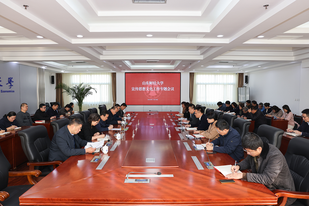 王邵军从四个方面对近年来学校宣传思想文化工作进行了总结回顾。学校成立了意识形态和宣传思想工作领导小组、大学文化建设领导小组等,不断深化改革创新,不断提高宣传思想文化工作能力和水平。在坚持不懈用习近平新时代中国特色社会主义思想凝心铸魂方面,学校党委坚持社会主义办学方向,严格“第一议题”制度,深刻理解“两个确立” ,自觉做到“两个维护”,坚决贯彻党中央及省委决策部署,全面服务和融入区域经济社会发展新格局,形成服务山东“财大品牌”。充分利用庆祝新中国成立70周年和中国共产党成立100周年、庆祝党的二十大胜利召开等重要历史节点,教育引导广大师生培养爱国之情,砥砺强国之志,实践报国之行。在培育和践行社会主义核心价值观方面,坚持“德育为先,育人为本”,把核心价值观融入教育教学全过程,引导青年学生勤学、修德、明辨、笃实,使核心价值观成为他们的基本遵循,形成优良的校风学风。在严格落实意识形态工作责任制方面,学校党委充分认识意识形态工作的极端重要性,旗帜鲜明地抓,理直气壮地管,让正确的思想言论大行其道,坚决不让意识形态工作失之于宽、松、软。在大学文化建设方面,健全了文化建设领导体制和工作机制,确定了文化建设的目标和内容,不断强化物质文化、制度文化、行为文化和精神文化建设,致力文化建设的特色、质量与品位不断提升。