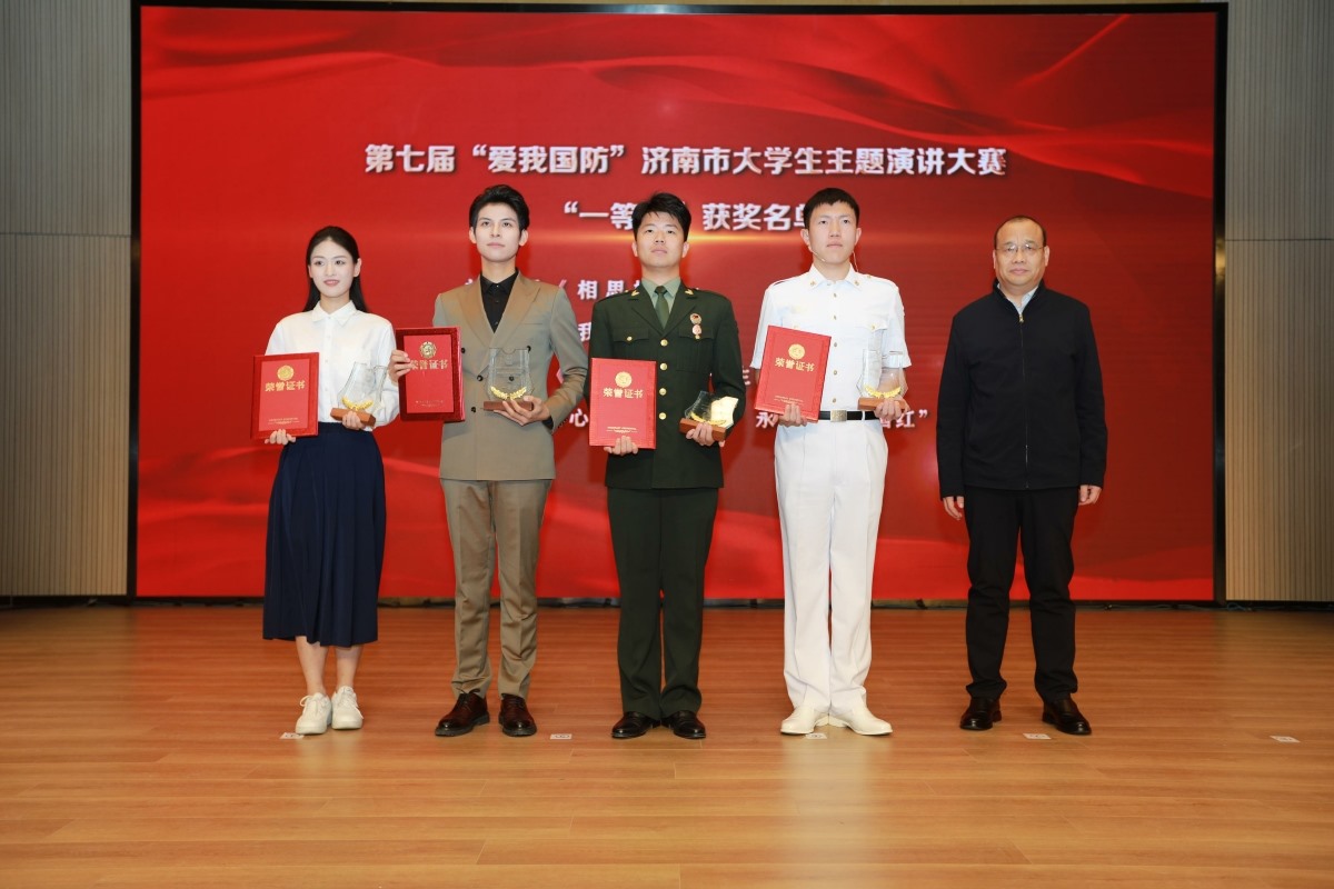 在第七届“爱我国防”济南市大学生主题演讲大赛中我校获得“优秀组织奖”;李永刚、焦玉博、李晓丽、高娜获得“优秀指导教师奖”;经济学院研究生周楠的作品《心中的“国防蓝” 永远的“中国红”》荣获一等奖;金融学院本科生王宝仪、张轩瑞的作品《十八岁的誓言》荣获二等奖;公共管理学院本科生高蓝月的作品《勿忘漫漫前路 国防自有来人》荣获三等奖;工商管理学院本科生卢冠文、徐娜娜、张婧雅、李一豪的作品《那一群人》、统计与数学学院本科生曲梦桐、李怡冉的作品《讲马兰故事 扬先生清风》荣获“优秀作品奖”; 由金融学院排演的国防主题节目《渴望光荣》作为本次活动的开场节目进行展演。