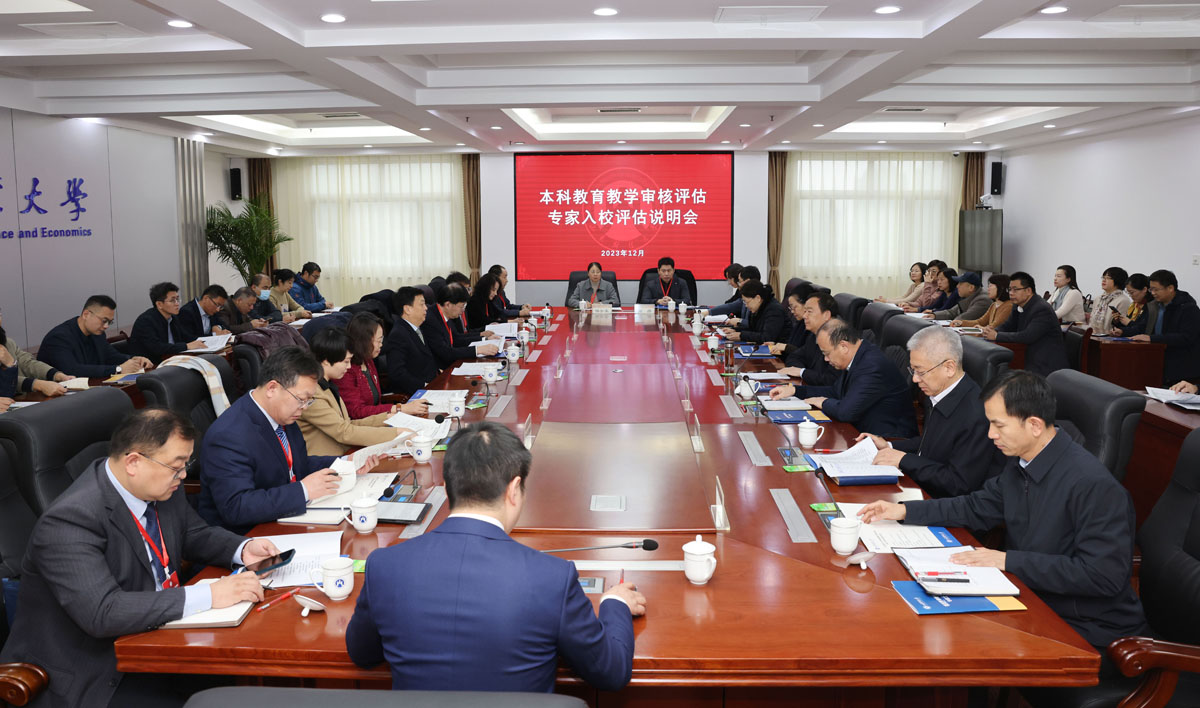 12月11日,学校本科教育教学审核评估专家入校评估说明会在燕山校区办公楼七层会议室举行。校党委书记王邵军致辞并做审核评估工作补充报告,专家组组长王乔就线上评估基本情况和入校考察评估进行说明。专家组成员山东工商学院副校长刘冰、东北财经大学国际经贸学院院长王绍媛、南京审计大学期刊社社长李陈华、贵州财经大学教务处处长徐艺、内蒙古财经大学评估办主任王玉莲、安徽财经大学教务处副处长廖信林、青岛农业大学巴瑟斯未来农业科技学院党委书记刘焕奇、山东政法学院马克思主义学院院长栗献忠,校党委书记王邵军,校党委副书记张培国,副校长陈晓兰、张新、谢申祥、王敬政,党委委员、统战部部长邓迎迎出席会议。副校长张红霞主持会议。各职能部门主要负责人、各院(部)院长、主任参加会议。