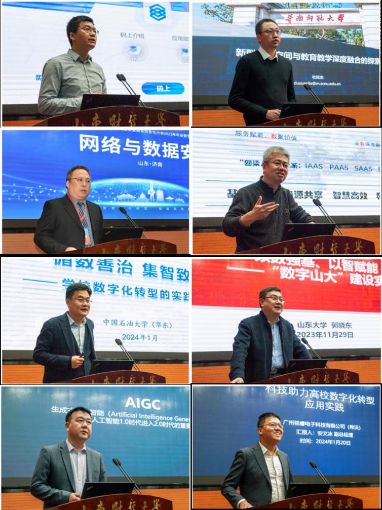 下午,北京建筑大学魏楚元、北京邮电大学徐童、华南师范大学杜炫杰、山东财经大学李德生、中国海洋大学张永胜、中国石油大学(华东)郝志杰、山东大学郭晓东分别从高校应用角度围绕教育数字化转型的实践与探索方面进行了深入探讨。乙盟信息等企业的技术总监分享了相关技术方案和案例。