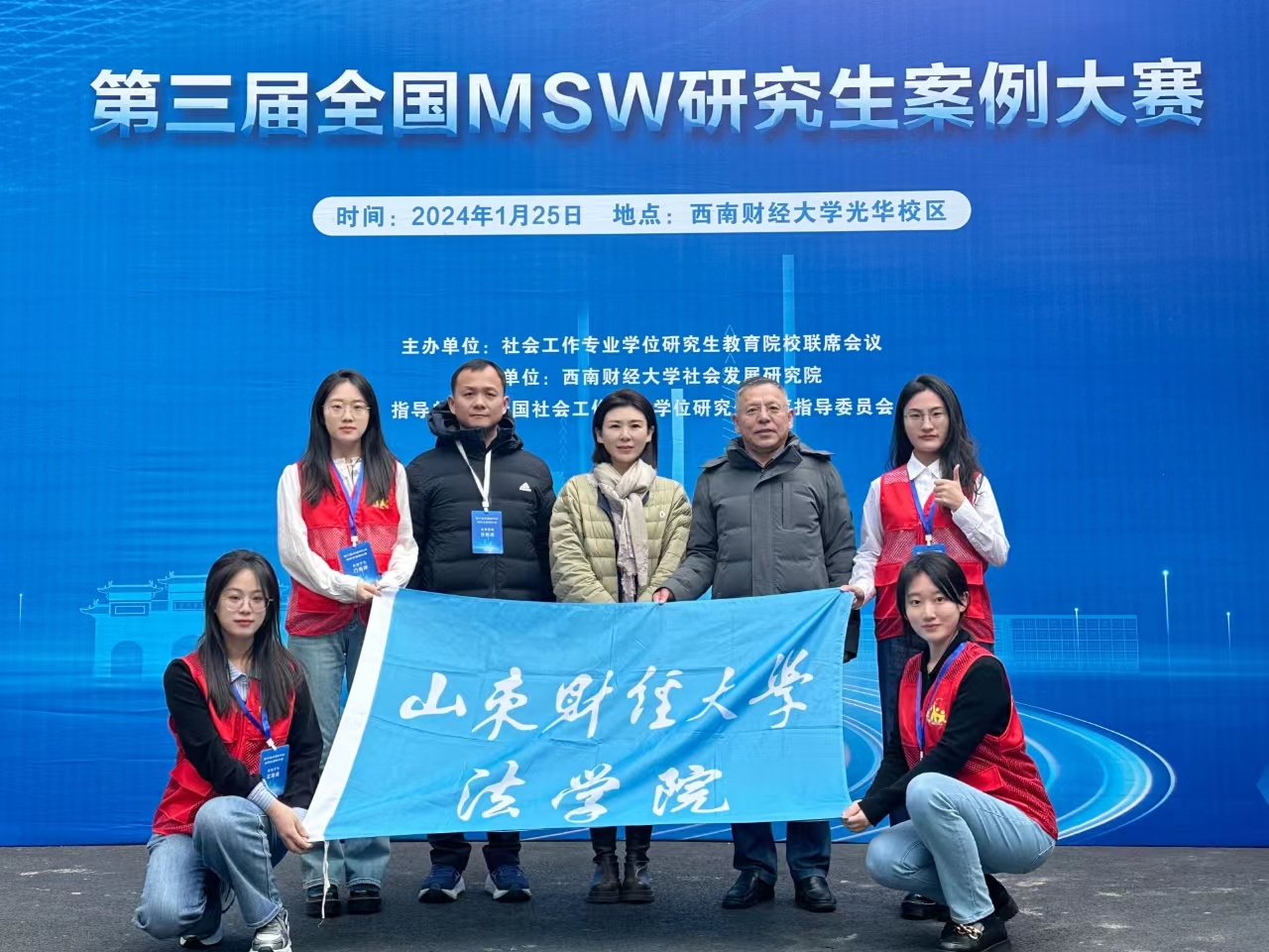 1月25日-26日,第三届“全国MSW研究生案例大赛”决赛暨颁奖典礼在西南财经大学举行。经过激烈角逐,由我校法学院社会工作系硕士生导师徐宏指导,2023级硕士研究生王潇清、隗楚冉、门晓婷、武笑赛联合组队申报的案例《“扶墙问路”——社会资本推动残疾人辅助性就业实践项目》成功入选并入围全国36强,参加现场决赛答辩。经过集中展示和问辩环节,该案例最终获得三等奖。