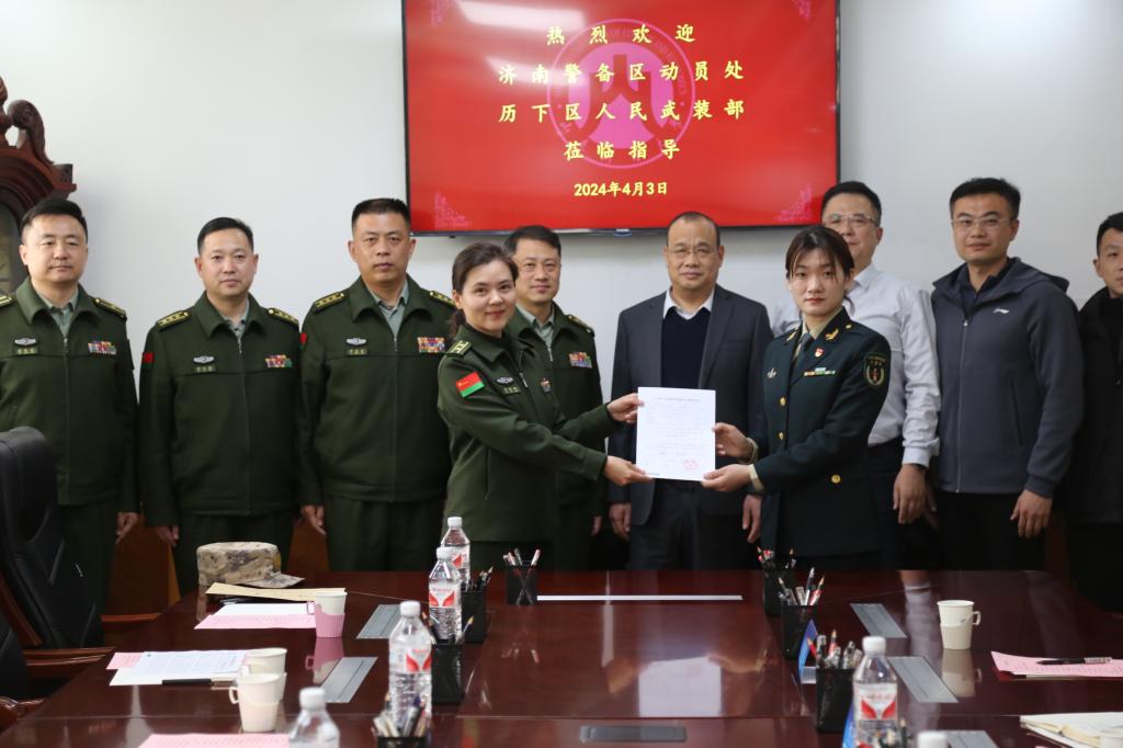 张培国对省、市征兵办、济南警备区和历下区人民武装部长期以来对学校国防教育工作的关心、指导表示感谢。他指出,学校一直以来高度重视国防教育工作,尤其将学生应征入伍为重点工作进行统筹部署,构建了完整的全过程工作体系。做好征兵工作,不仅为部队兵员征集作出应有贡献,更是让学校受益匪浅,退役复学学生在教育教学、道德规范、行为风尚等方面发挥了显著示范引领作用,逐渐成为学校日常管理、新生军训、入伍宣传、国防宣讲等工作的骨干力量。