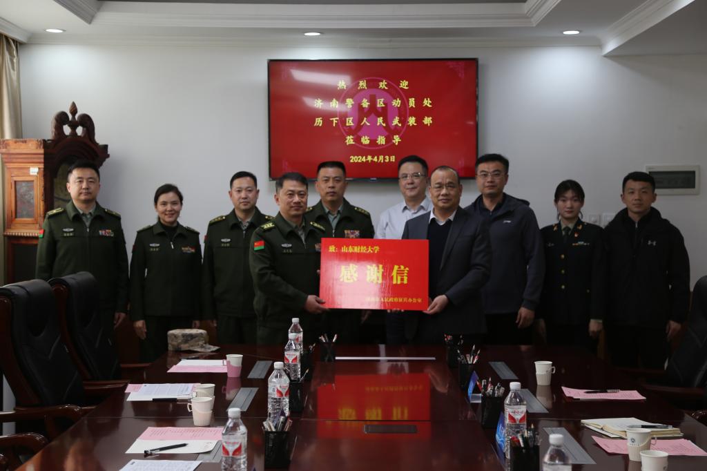 4月3日下午,济南市人民政府征兵办公室副主任、济南警备区动员处处长王云龙,历下区人民武装部部长苏圣泳、政委刘心海一行6人来访,代表山东省人民政府征兵办公室、济南市人民政府征兵办公室向学校赠送感谢信。校党委副书记张培国会见客人并座谈,校党委学生工作部(处)、武装部负责人、退役复学学生代表参加座谈。