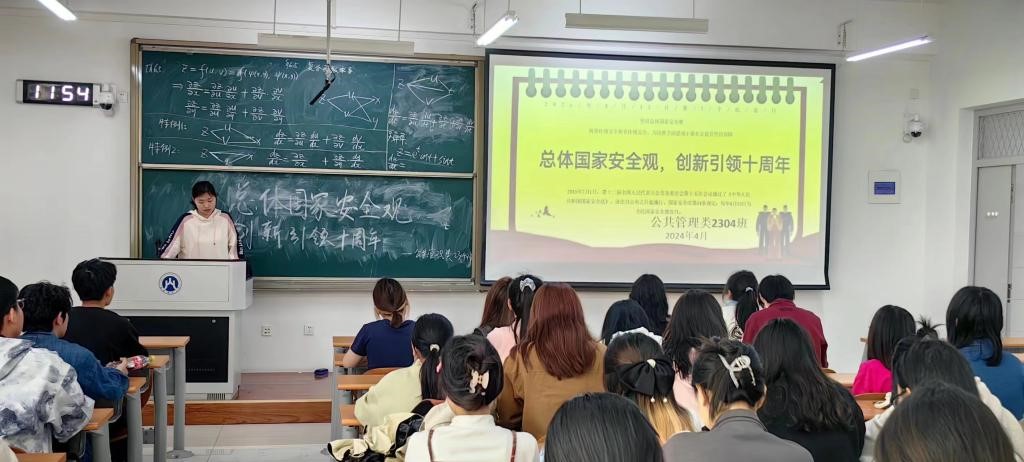 公共管理学院于4月9日在圣井校区开展2024年总体国家安全观宣传教育主题活动。4月11日至12日,面向2023级全体学生举办了“总体国家安全观·创新引领10周年”主题班会。4月14日下午,组织学生线上收看了以“千万高校学生同上一堂国家安全教育课”为主题的公开课。