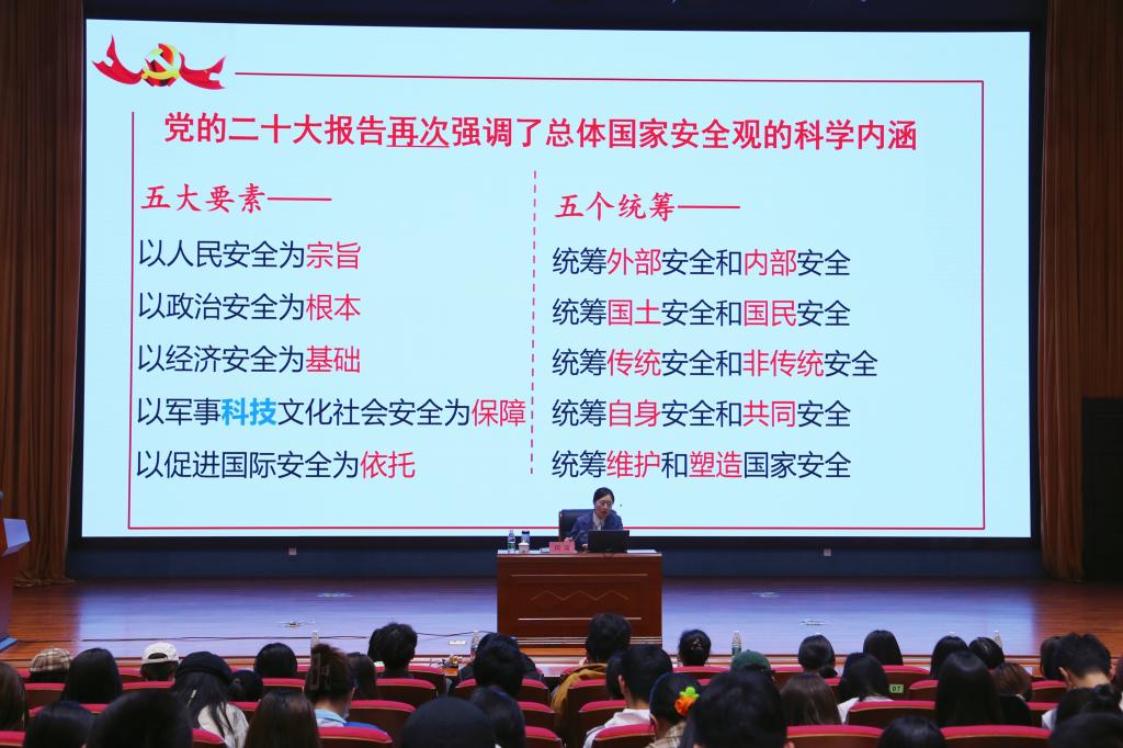 4月11日下午,党委宣传部、党委学生工作部在圣井校区举办报告会,邀请山东省委党校(山东行政学院)科社部副教授何丽作专题报告。何丽以“百年未有之大变局与新时代国家安全形势”为题,从“国家安全是民族复兴的根基、从百年变局看国家安全的严峻形势、推进国家安全体系和能力现代化”三方面入手,系统阐述了习近平总书记关于总体国家安全观的重要论述。报告内容详实,说理透彻,富有感染力,引人思考。