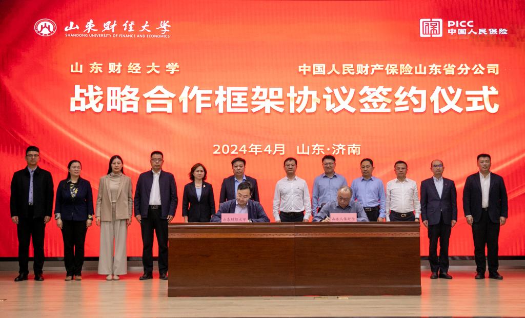 4月17日下午,山东财经大学与中国人保财险山东分公司签署战略合作协议仪式在山东人保大厦举行。校党委委员、副校长王敬政,人保财险山东分公司党委书记、总经理薛柏出席活动并致辞。