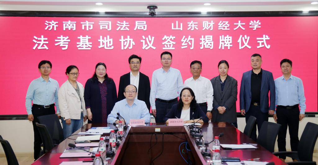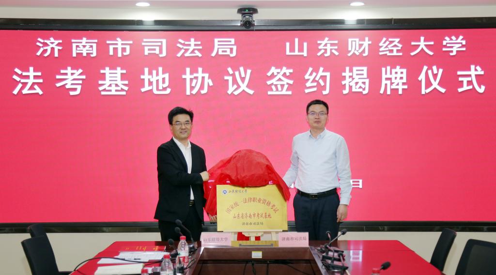 仪式上,济南市司法局与学校实验教学中心共同签署了《济南市司法局-山东财经大学法考基地合作协议》。