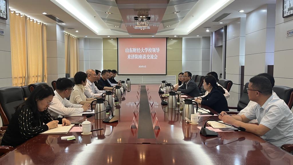 为服务地方经济发展,推动产教融合、科教融汇,4月19日,山东财经大学副校长张新带队到济阳区调研交流。区委副书记、区长黄晓广,副区长陈潇、赵明亮(我校教授、挂职)陪同调研。双方就加强校地合作、人才培养、校友经济等进行深入交流。