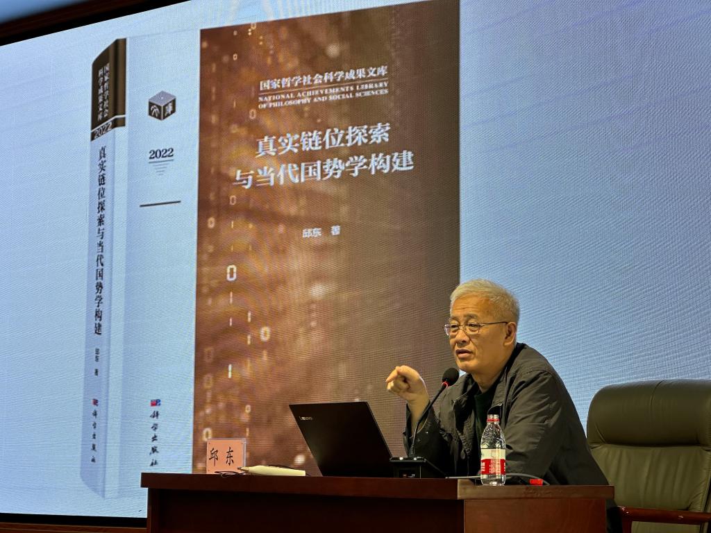 其次,邱东分析了《真实链位探索与当代国势学构建》的特点和当代“国势学”涉及到的学科问题。强调了社会科学不人文,单单效仿自然科学并非正途,并且要注重基层逻辑、基础数据和基本事实。随后他介绍到国势研究具备广延性。国势的概念与原来一直讲的“国情”“国力”不同,更关注四点:格局和系统结构、趋势、质量和软实力。他还强调了“测度逻辑”的切实链接以及“国势学”涉及到的一些学科问题。