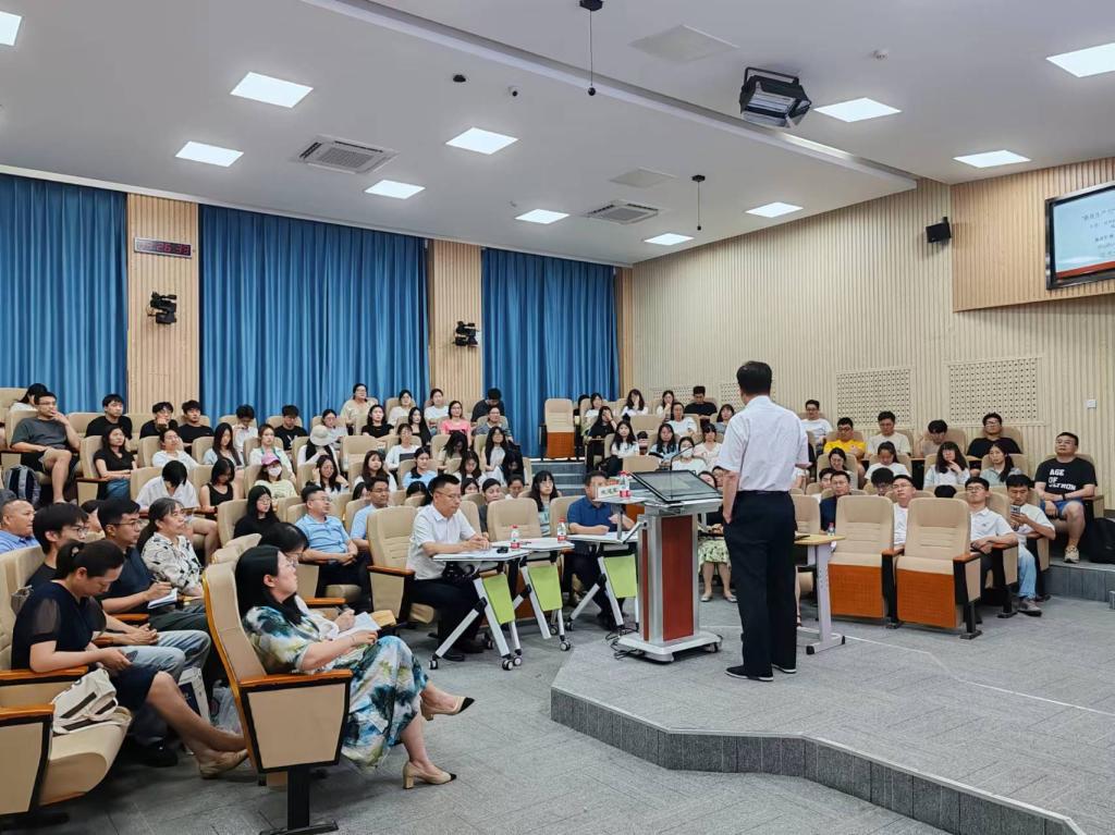 6月17日下午,由我校主办,科研处、学科建设办公室、会计学院、统计与数学学院承办的“燕山大讲坛”(第九期)在燕山校区举行。前南京大学常务副校长、对外经济贸易大学校长、中国教育审计学会会长、中国统计学会副会长、中国企业管理研究会副会长,现中国财经教育分会理事长施建军教授作了题为《“新质生产力”与“创新力”思考》的学术报告。