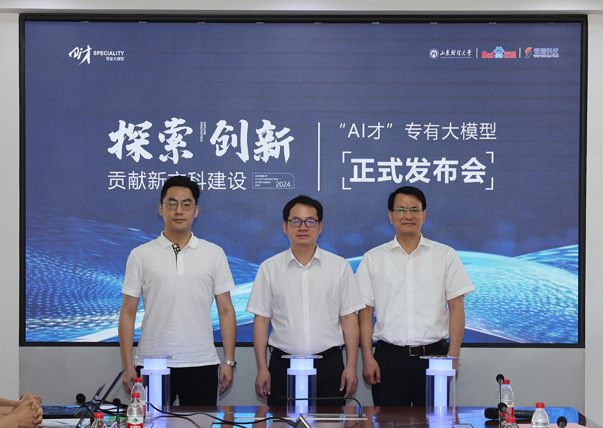 7月11日上午,学校“AI才”教育教学专有大模型发布会在燕山校区举行。校长洪俊杰、副校长张红霞出席发布会。山东省教育厅高等教育处处长曾宪文、副处长代善成,百度智能云、山东银瑞信息科技有限公司相关负责人,媒体记者,学校相关职能部门负责人,各学院院长及公共管理学院研发团队参加。发布会由张红霞主持。