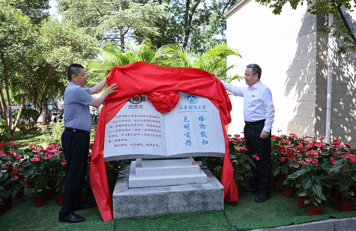 王汉领在致辞中深情回顾了在山财大的求学岁月,表达了作为校友积极捐助礼堂修缮等建设项目,既是义不容辞,也是责任担当。他表示,纳博士集团是母校最忠诚的校友企业代表,二十多年来一直积极支持母校发展,多次为母校进行捐赠活动、赞助学校教职工和同学们的系列活动、积极参与、承办、组织校友互动、互助、互爱系列活动、积极推进党建共建、供需对接、就业育人、校企合作工作室、专项课题研究等系列校企合作工作。今后,将继续不遗余力地支持母校的建设与发展。