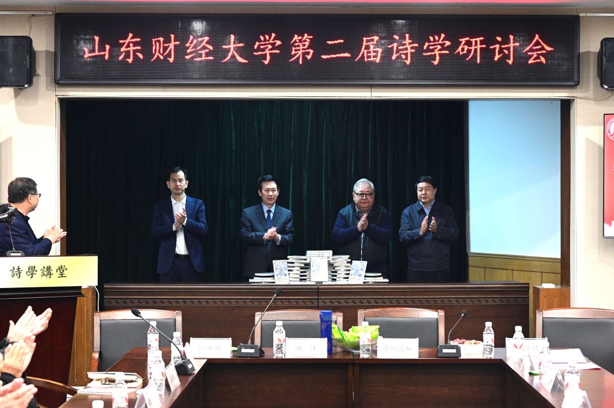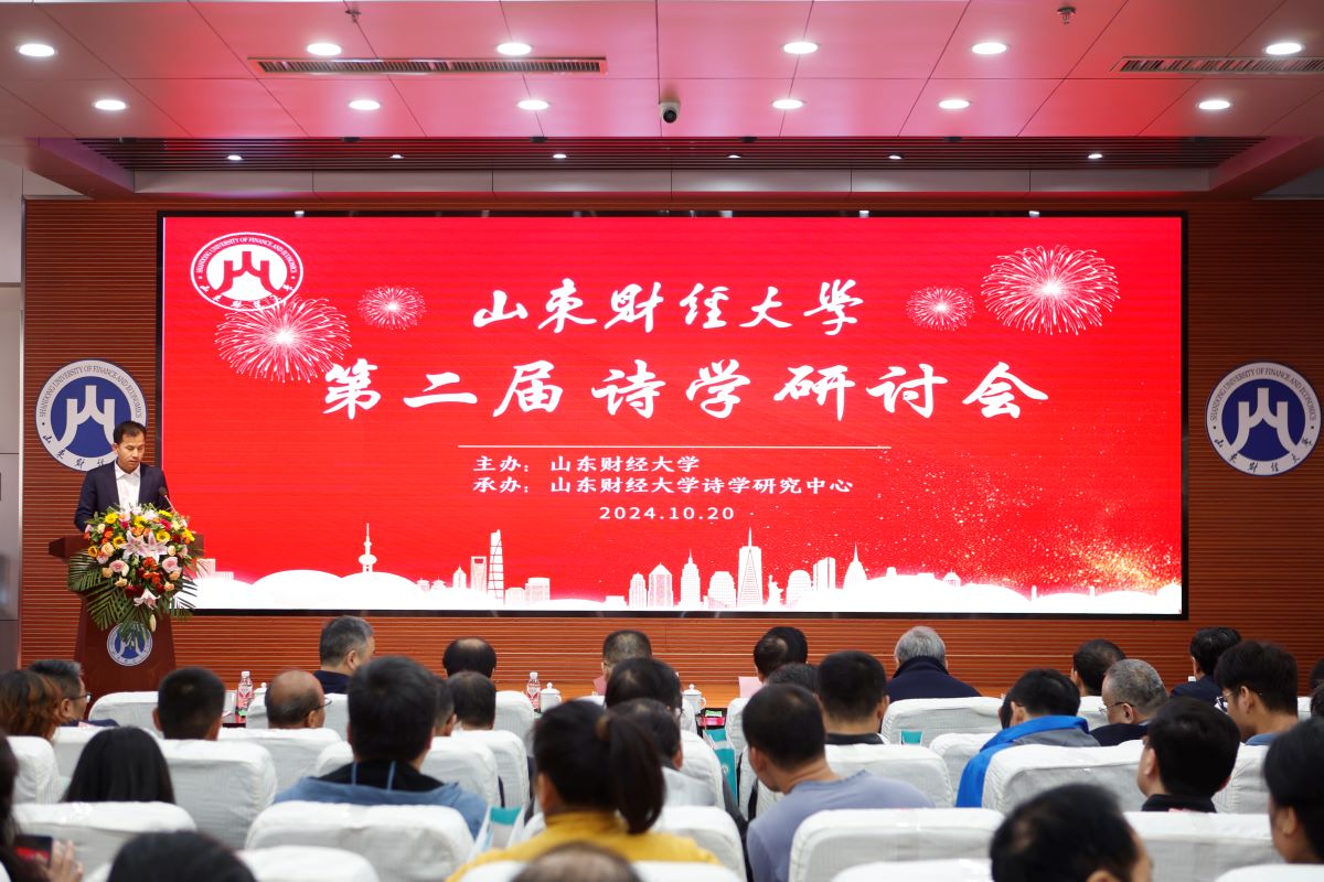 10月20日上午,山东财经大学第二届诗学研讨会在舜耕校区天舜大厦文华堂举办。