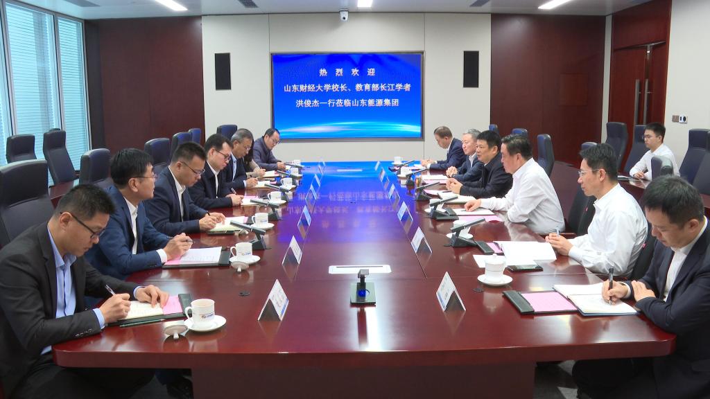 周鸿对洪俊杰一行的到访表示热烈欢迎,介绍了山东能源集团不断通过资产重组、产业整合和战略调整,实现跨越式发展的历程。他表示,集团承担着贯彻实施中央和省委省政府战略意图,保障全省能源安全、优化能源布局、调整能源结构的职责使命,围绕“五大战略”,做大做强“六大主导产业”,推进发展方式、管控方式、生产组织方式的转变,不断为山东经济社会发展作出贡献。山东财经大学作为特色鲜明的高水平财经类高校,学科和人才优势突出,希望双方在产业数智化、绿色低碳、科研项目、就业实践等方面加强合作、协同并进。