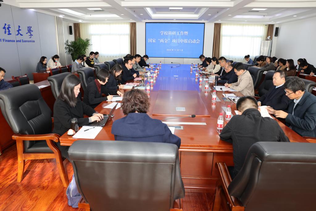 会上,科研处副处长(主持工作)郭健汇报了我校2024年科研工作情况以及国家“两金”项目的申报计划。经济学院副院长张明志、金融学院副院长王营、管理科学与工程学院副院长马建华、外国语学院院长助理张斐瑞分享了国家“两金”项目的组织申报经验。