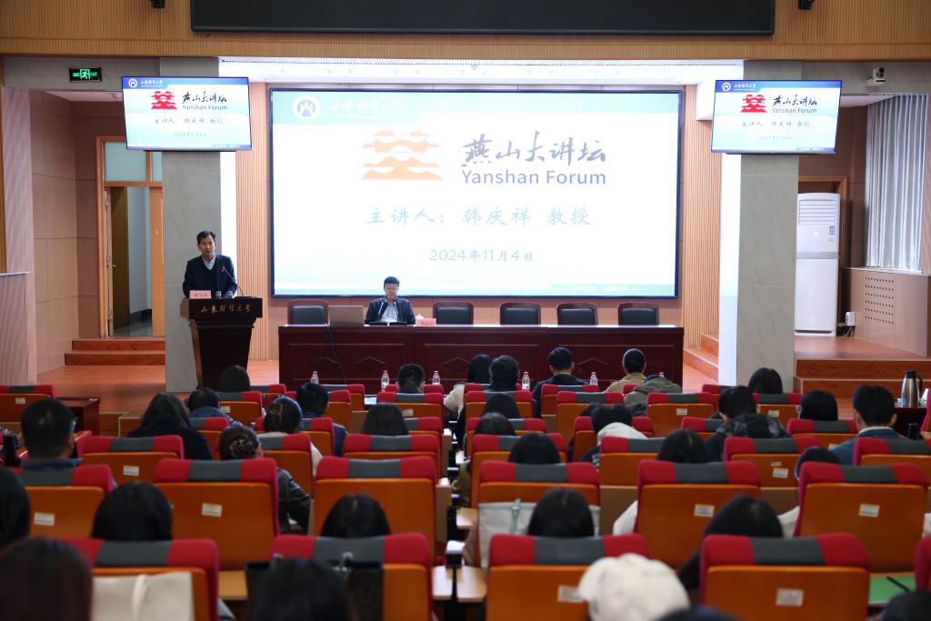 11月4日下午,由我校主办,科研处、学科建设办公室、马克思主义学院承办的“燕山大讲坛”(第十五期)在燕山校区举行。中共中央党校(国家行政学院)原校委委员、副教育长兼哲学教研部主任、博士生导师、一级教授韩庆祥作了题为《从中国式现代化到中华民族文化主体性》”的学术报告。本期大讲坛由校党委副书记谢申祥主持。