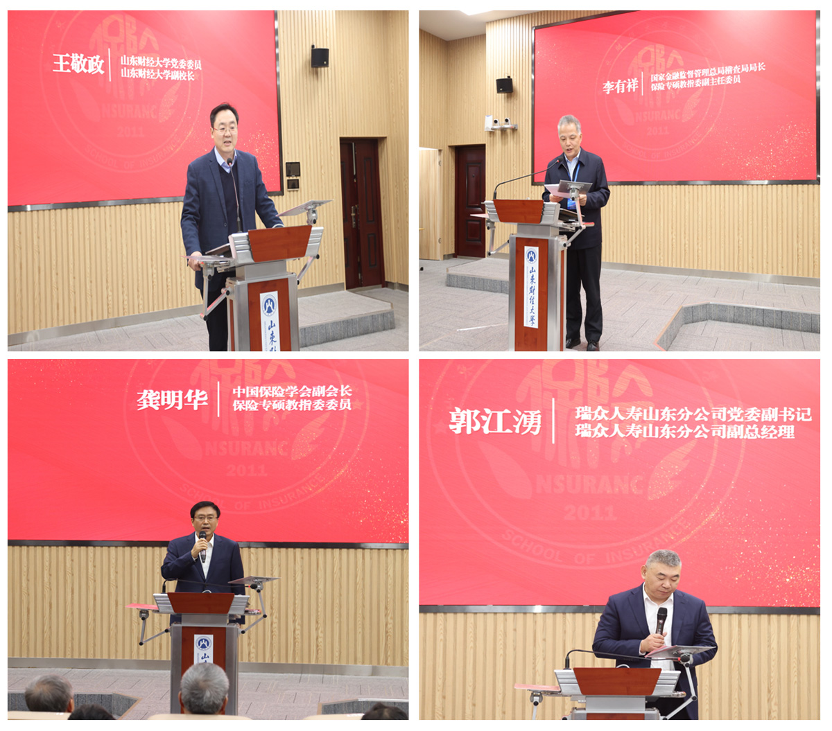 开幕式阶段,王敬政在致辞中向出席会议的各位来宾表示欢迎,对社会各界、兄弟单位给予山东财经大学特别是保险学院发展过程中的大力支持表示衷心感谢,介绍了山东财经大学办学特色、学校第二次党代会确定的“一一三九”发展思路以及学校在学科建设工作中的实践与举措。他指出,山东财经大学保险学院作为全国高校中仅有的五家保险学院之一,在保险专业学位研究生教育方面积极探索,不断创新,为保险行业培养了一批优秀的专业人才。学校将在各位领导专家的支持下,加强与各界的合作交流,为推动保险业高质量发展贡献力量。