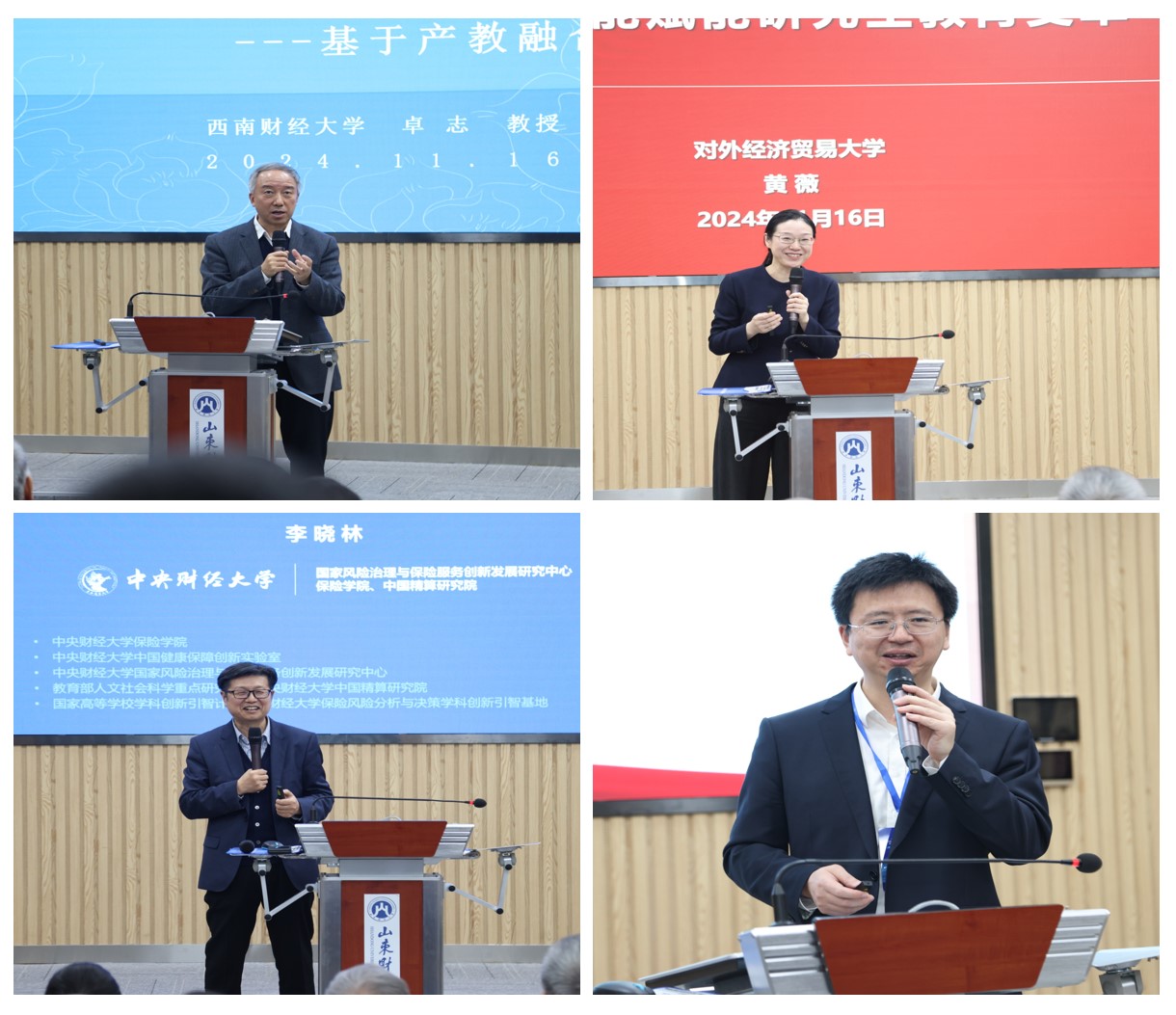 论坛第二阶段为主旨演讲,由山东财经大学保险学院院长于文广教授主持。卓志以“推动高质量保险专硕人才的培养—产教融合视角”,黄薇以“人工智能赋能研究生教育变革”,李晓林以“构建保险专业教育的认识论框架,在风险变迁与保险转型中立于主动”为切入点,带来了前沿的学术观点和人才培养经验。最后,周桦作了2024年教指委工作报告。