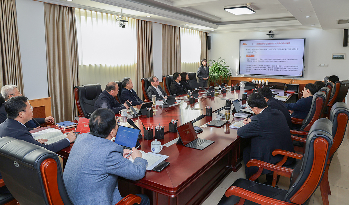 11月21日上午,校党委理论学习中心组进行第13次专题学习,深入学习习近平法治思想。校党委书记查玉喜主持学习,校长洪俊杰等各位中心组成员参加学习。