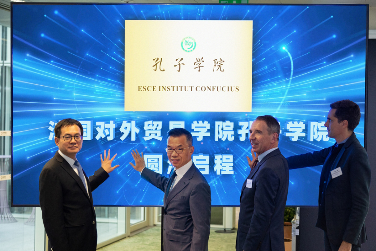 今年适逢中法建交60周年及孔子学院品牌创立20周年之际。12月6日,学校与法国高等对外贸易学院共同举办了孔子学院揭牌仪式及书画展。中国驻法国大使卢沙野,法国国民教育部教育、体育和科研总督学兼汉语总督学尼古拉·易杰等近百人参加相关活动,中国国际中文教育基金会副理事长、秘书长赵灵山线上致辞。