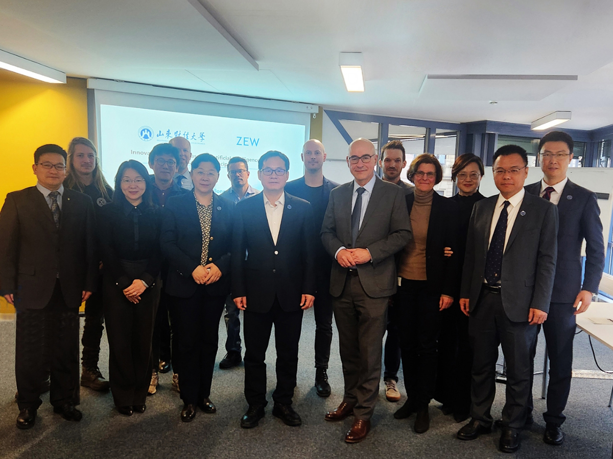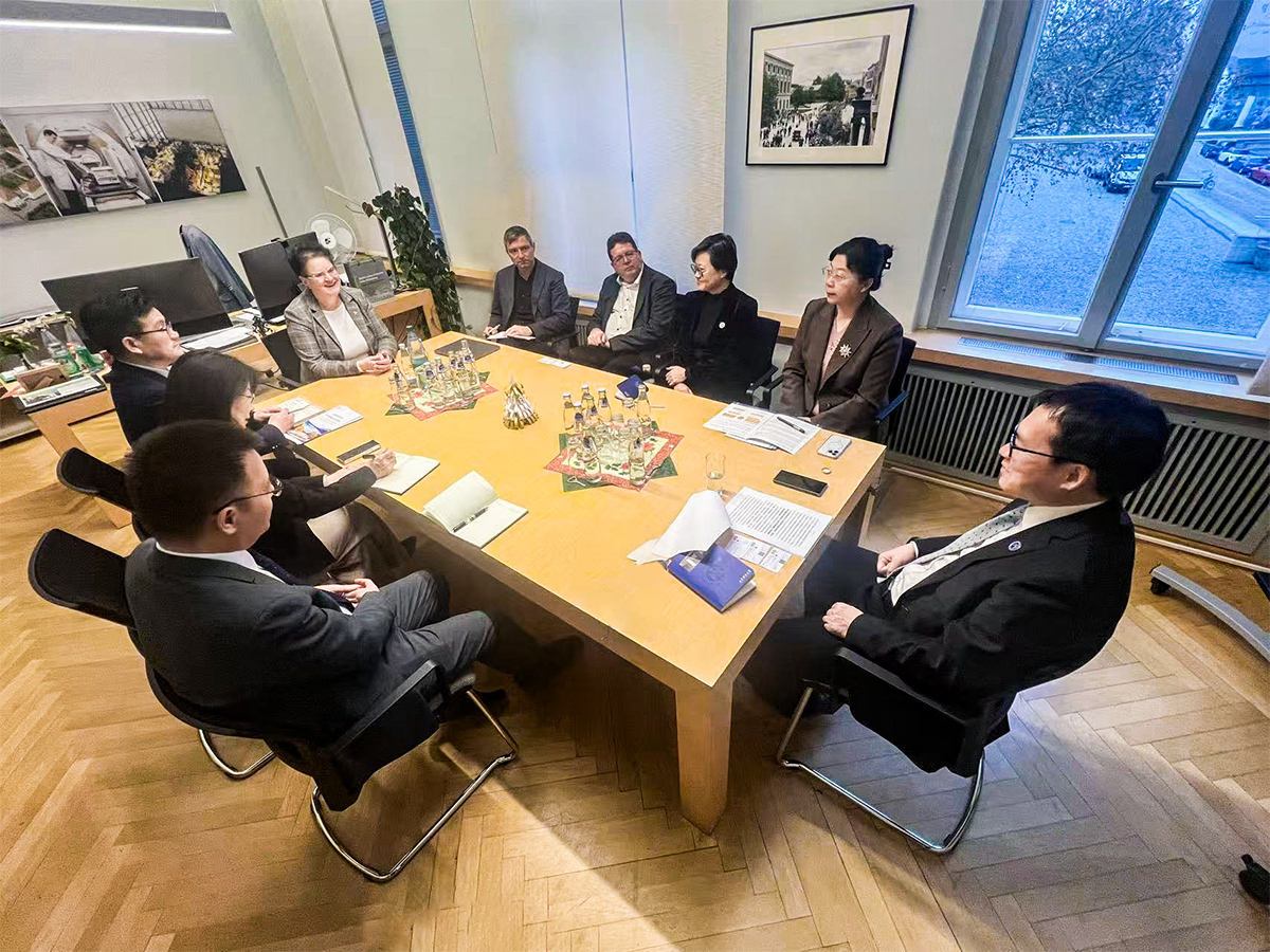 在欧洲经济研究院(ZEW),代表团与院长、德国国家科学与工程院院士王安信,数字经济研究团队负责人艾琳·博特斯凯克等10余位专家学者就开展联合研究、共建引智基地、深化中欧智库间交流与合作等进行了深入沟通。ZEW是欧洲最著名的经济研究机构之一,也是莱布尼茨协会成员,汇聚了一批在全欧享有盛誉的专家学者。