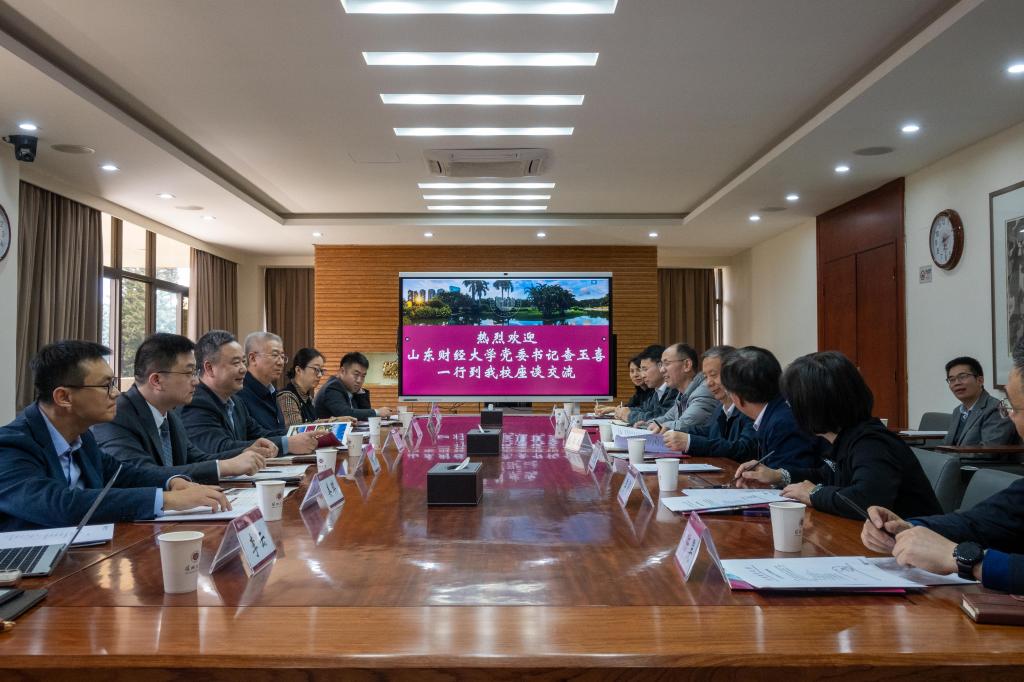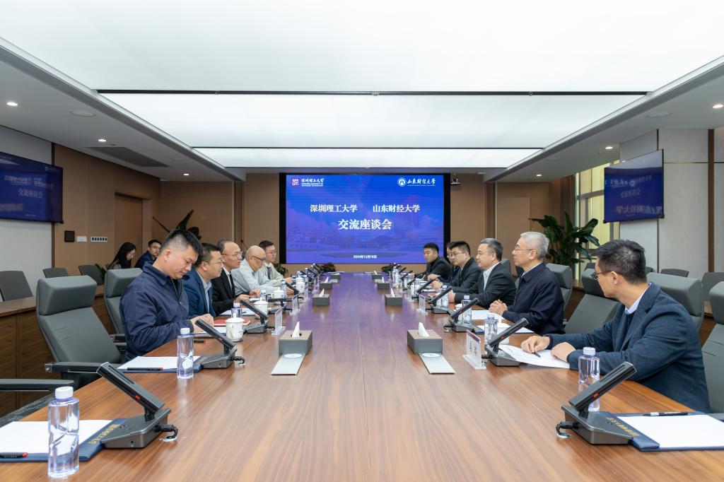 在深圳理工大学,党委书记朱迪俭对查玉喜、张新一行到访表示热烈欢迎,并陪同参观了学校展厅、袁庚书院、教学楼、体育馆等。在座谈交流中,朱迪俭介绍了学校的发展情况,并表示通过与山东财经大学开启战略合作,将更好地推动深圳理工大学拔尖创新人才培养、科学研究与科技成果转化等工作。