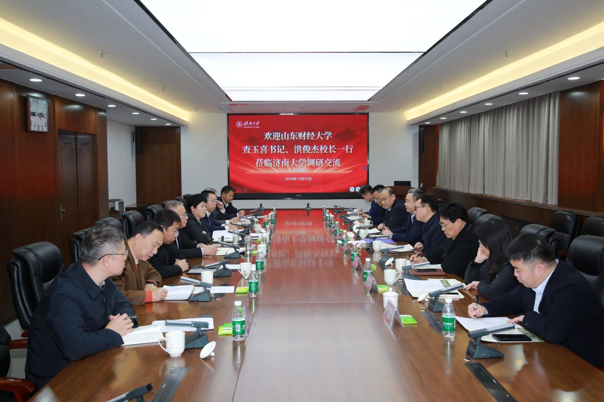 12月25日下午,学校党委书记查玉喜、校长洪俊杰、党委副书记张培国等一行访问济南大学。济南大学党委书记刘春华、校长刘宗明,副校长黄加栋、徐征和会见我校人员并座谈交流。
