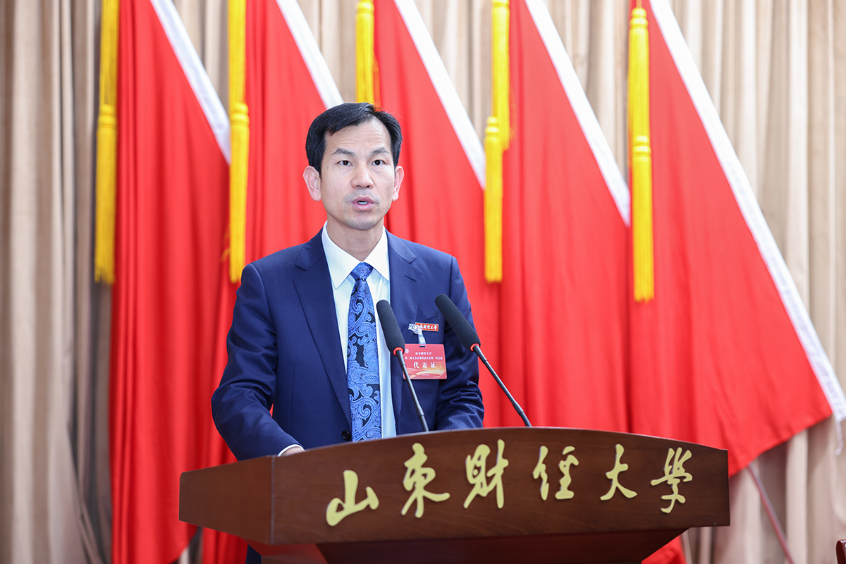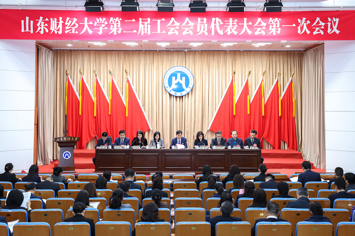 4月18日上午,山东财经大学第二届工会会员代表大会第一次会议在燕山校区图书馆报告厅举行。校党委副书记谢申祥出席会议并致开幕词,校工会主席邱博作《工会工作报告》,校妇女工作委员会主任、工会副主席韩晓燕主持会议。77名正式代表、列席代表参加会议。