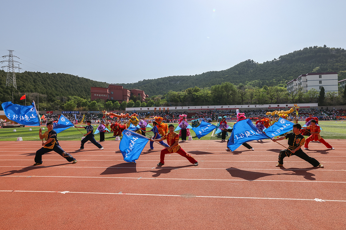 开幕式上,武术表演《藏龙卧虎》由全校范围内选拔出的320名学生组成,以长拳穿插太极的方式展现财大青年积极向上、勇往直前的精神风貌,透射中华民族的文化自信。