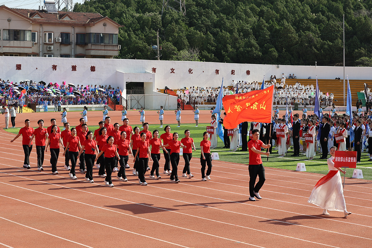 上午8时15分,伴随激昂奋进的《运动员进行曲》,国旗队、校旗队、红旗队、花束队、19支学院代表队、校友会方队,财政部山东监管局、山东省财政厅等9支财政金融系统代表队及我校教职工代表队迈着整齐的步伐,昂首挺胸依次走过主席台。
