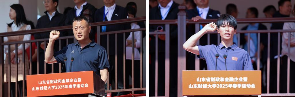 裁判员代表、体育学院孙宝聪,运动员代表、2022级社会体育指导与管理专业孙安平分别代表全体裁判员、运动员宣誓。