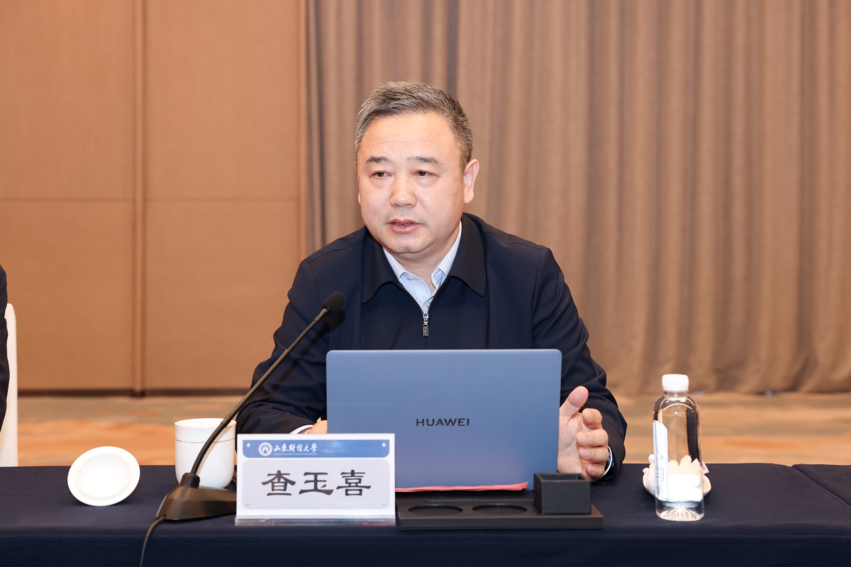 查玉喜向多年来关心支持学校发展的老领导、校友们表示感谢。他简要介绍了学校的办学历史、红色基因的历史传承,学校近期在教学、科研、人才、校友工作等方面的进展,以及学校坚持开放办学、协同发展、服务社会等取得的新成效。他表示,学校根植于泉城兴教办学,得益于济南丰厚的山水沃土和文化滋养,也始终将服务济南、服务山东作为自身的重要使命。希望校友们进一步加强联系,整合资源,凝聚“财大力量”,推动校友经济与地方发展同频共振,在服务济南发展、助力母校高水平财经大学建设的新征程中,作出更大贡献。