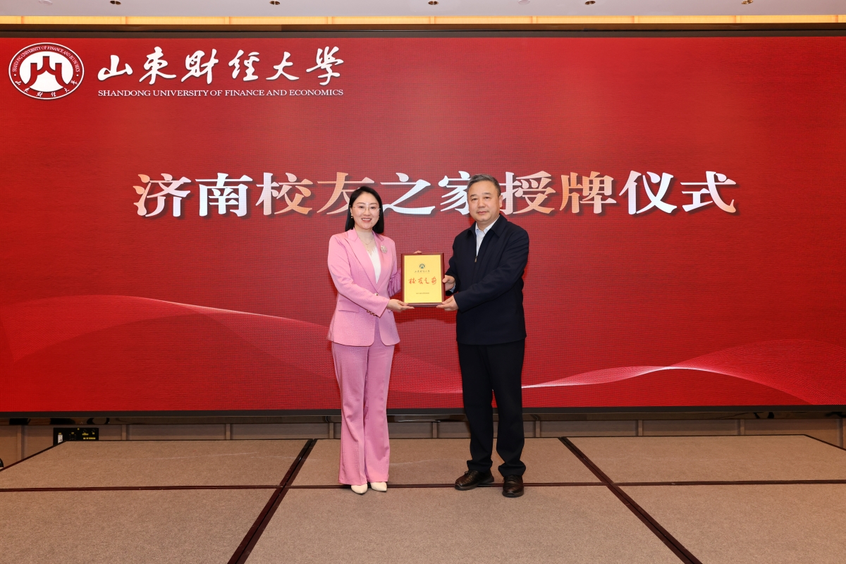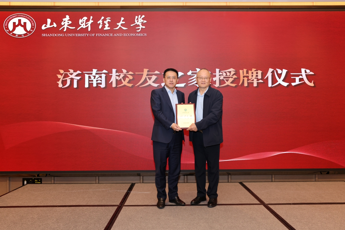 刘兴云、查玉喜分别为润华集团总裁、我校1992级校友任鹤年,沃尔德集团总裁、省政协常委、我校1999级校友商雪梅,颁授“济南校友之家”匾牌。