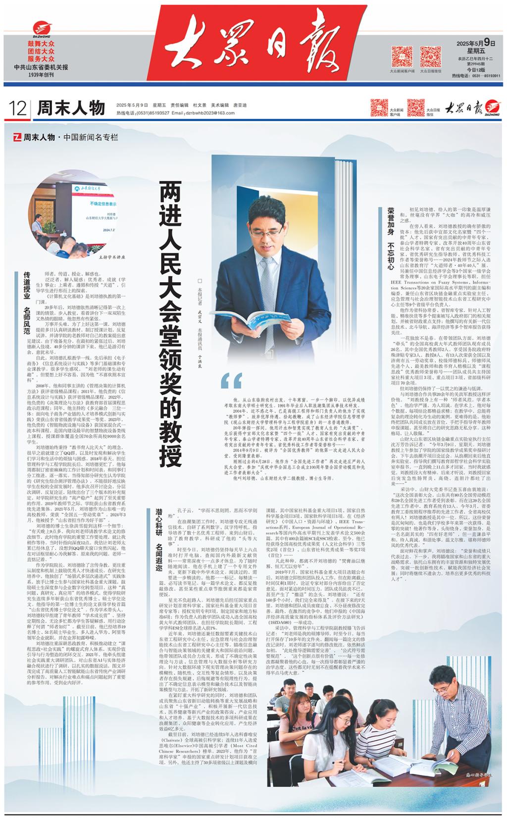 他叫刘培德,山东财经大学二级教授、博士生导师。