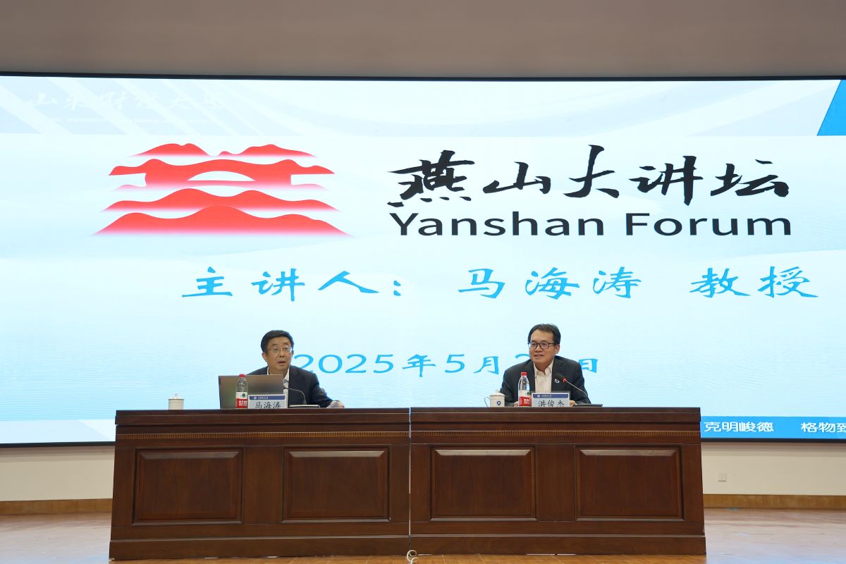 5月23日下午,由我校主办,科研处、学生工作部、研究生院(学科建设办公室)、财政税务学院承办的“燕山大讲坛”(第二十一期)在燕山校区礼堂举行。国务院学位委员会学科评议组成员、中央财经大学校长马海涛教授作了题为《“十五五”时期深化财税体制改革研究与政策建议》的学术报告。校党委书记查玉喜会见来宾,校长洪俊杰主持本期大讲坛,党委副书记谢申祥全程参加有关活动。