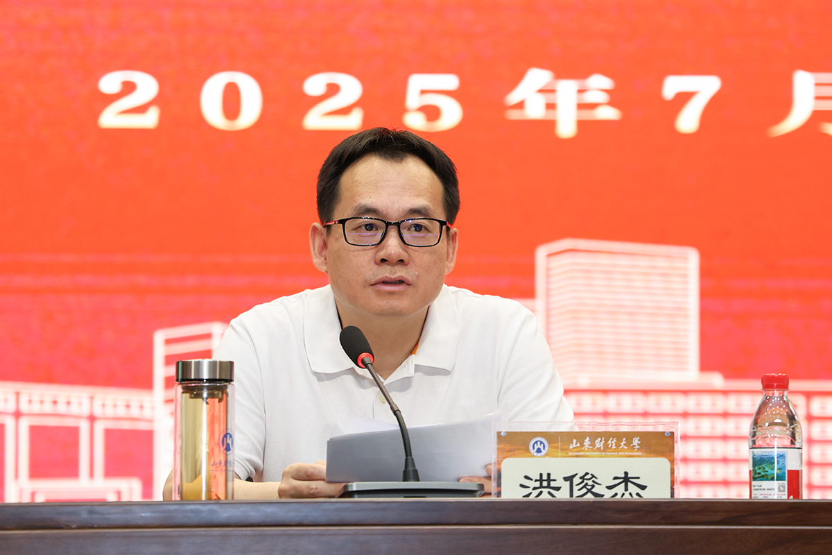 洪俊杰回顾总结了学校2025年上半年工作。他说,上半年,我们遵循学校第二次党代会确定的“一一三九”发展思路,围绕人才培养、科学研究、社会服务、国际交流等重点工作,持续深化改革创新,着力推进学校事业高质量发展,各项工作取得显著进展。一是接受省委巡视组巡视,党的建设全面加强。圆满完成省委第六巡视组现场巡视任务。成立深入贯彻中央八项规定精神学习教育专班,通过多样化学习方式筑牢思想根基。干部队伍建设持续加强,完成中层领导班子考核调整,举办年轻干部纪律作风培训班,为发展提供坚强组织保障;二是综合改革持续深化,高质量发展进一步提速。学校完成2024年中层单位考核,制定2025年任务书,制定“一校一书”“一院一书”改革指标。“十五五”规划编修有序推进,第三次教代会和第二次工代会成功召开,独立学院合作办学协议制定并稳步落实。三是立德树人目标更加坚定,培养质量大幅提升。《“421”行动计划》入选省教育综合改革和制度创新典型案例。AI-PAI新财经人才培养实施方案发布。“数字孔子”走进课堂。专业结构持续优化。研究生培养方案同步完善。获批省级人工智能赋能重点领域教学改革项目3项,山东省研究生教育教学资源项目67项,获山东省高校教师教学创新大赛一等奖2项,获山东省第十二届高校青年教师教学比赛一等奖1项,获第十九届“挑战杯”山东省大学生课外学术科技作品竞赛特等奖4项。截至目前,毕业生总体去向落实率达86.33%,多项就业指标位居全国或全省前列;四是学科建设成效显著,科研实力持续增强。围绕2026年博士点申报,确定公共管理学、外国语言文学、区域国别学、智能科学与技术、系统科学5个一级学位授权点和会计专博进行重点培育。完成2020-2025年学位授权点周期性合格评估工作和2024年山东省“高水平学科”项目绩效评价工作。推动交叉学科建设。国家级、省级课题获批数量稳步增长,发表高水平论文220余篇,6项案例获教育部主题案例征集立项。多场高水平学术活动成功举办,学术氛围日益浓厚。五是社会服务能力大幅提升,服务地方成效显著。获批省决策咨询研究项目4项,省人民政府决策咨询研究重点课题2项。获山东省决策咨询优秀研究成果3项,山东省自然科学奖二等奖一项。积极推动“数据要素与智能治理”实验室申报教育部哲学社会科学实验室(第二批),推进“中国经济发展与安全实验室”筹建工作。六是人才队伍持续壮大,师资力量再上新台阶。引进德国国家科学与工程学院院士、欧洲科学院院士各1名,国家级领军人才4名、青年领军人才5名,全职引进骨干人才30名,招收博士后13名。3人入选 “中国高被引学者榜单”,1人获“全国先进工作者”称号,为发展注入强劲动力。七是国内合作遍地开花,国际化进程提档加速。与深圳市龙华区共建深圳研究院,与泰安、临沂、章丘等地方政府,与山东省应急管理厅、山东财金集团、中国移动济南分公司等企事业单位签署战略合作协议,与国家税务总局山东省税务局等达成合作意向,在高端智库建设、协同人才培养、发展校友经济等方面推动全面合作,持续打造服务经济社会发展的“财大品牌”。法国孔子学院交流成效显著。学校获评“2024年度山东省教育国际交流工作先进单位”和 “雅思示范高校”称号。英国48家集团、欧洲经济研究院等国(境)外来访团组近20个,国际影响力持续提升。八是文化建设繁荣发展,社会影响力显著增强。“文化建设年”活动蓬勃开展,校史溯源至1948年成立的山东省立商业专门学校,创校校长顾准先生铜像落成。文体活动丰富多彩,荣誉体系不断完善,主流媒体多次报道学校成就。九是办学条件不断优化,师生幸福感显著提升。收入分配管理、内控建设、校区改造、“暖心关爱工程”、资产盘活、后勤服务保障等工作有序推进,师生幸福感显著提升。