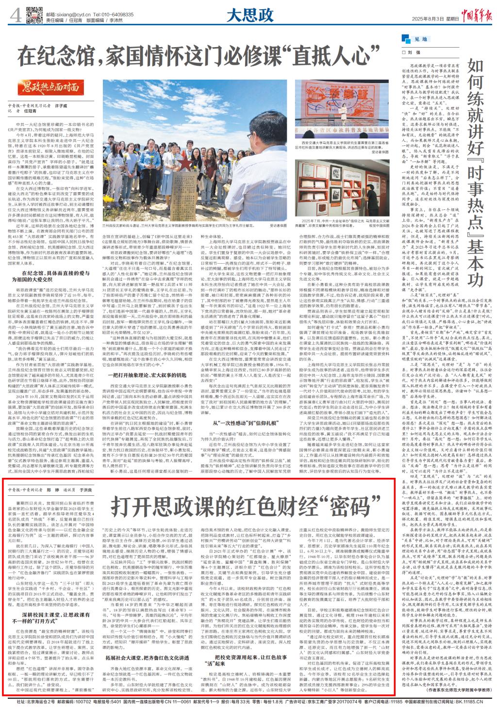 媒体链接:《中国青年报》——打开思政课的红色财经“密码”