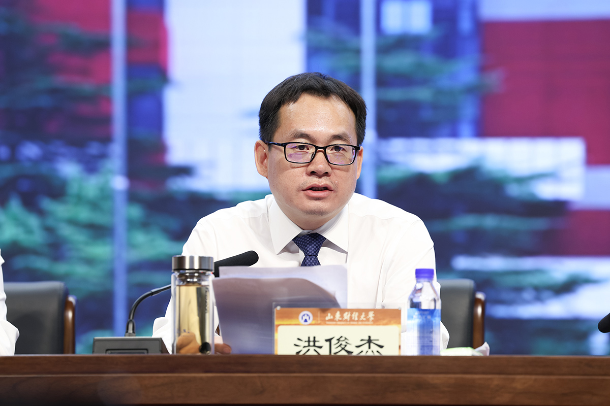 在热烈的掌声中,洪俊杰发表讲话。他向全体教职员工致以节日的问候,向受到表彰的老师们表示热烈祝贺,向刚刚入职的新同事表示热烈欢迎。过去一年,全校广大教师始终牢记“为党育人、为国育才”的初心使命,以“克明峻德 格物致知”的校训精神为指引,在教育教学、科学研究、人才引育、管理服务等方面勇毅前行,取得了显著成绩,用智慧和汗水书写着山财大发展的新篇章。