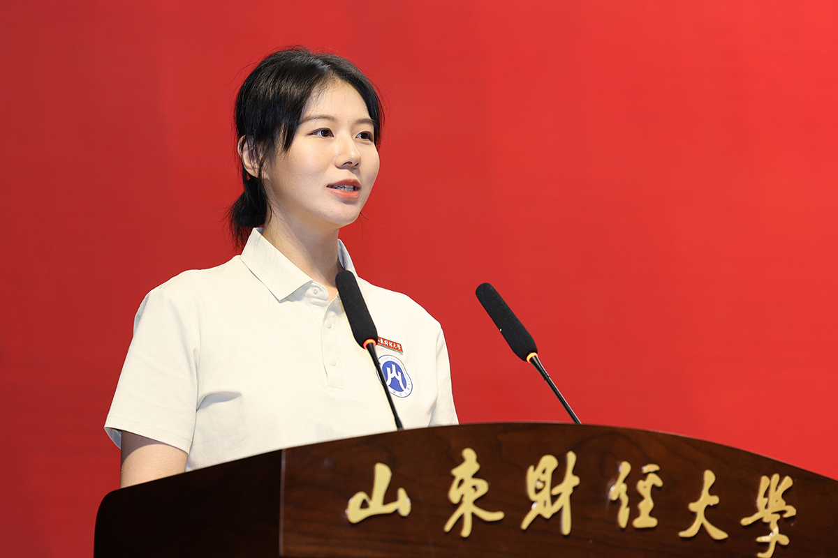 预聘制副教授、管理科学与工程学院王鑫博士代表新入职教师发言,表示学校对青年教师的包容关爱和求真务实的工作部署,令自己备受鼓舞。未来将以“教育家精神”为指引,融入山东财大、扎根山东财大,早日成长为一名合格的高校教师!