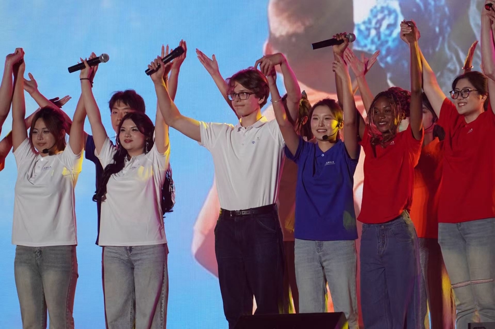 师生同台、合作表演成为晚会温情亮点。新生辅导员代表与大学生艺术团携手演绎《青春的方向》,歌声中饱含对新生的美好期许;中外学子同唱《世界是个同心圆》,诠释美美与共、天下大同的美好愿景;《我的深情为你守候》展现师者以教育家精神照亮育人之路;《满江红》将琵琶、鼓乐与古诗词朗诵相结合,以刚柔并济的形式和磅礴气势抒发青年立爱国报国大志向的坚定誓言。