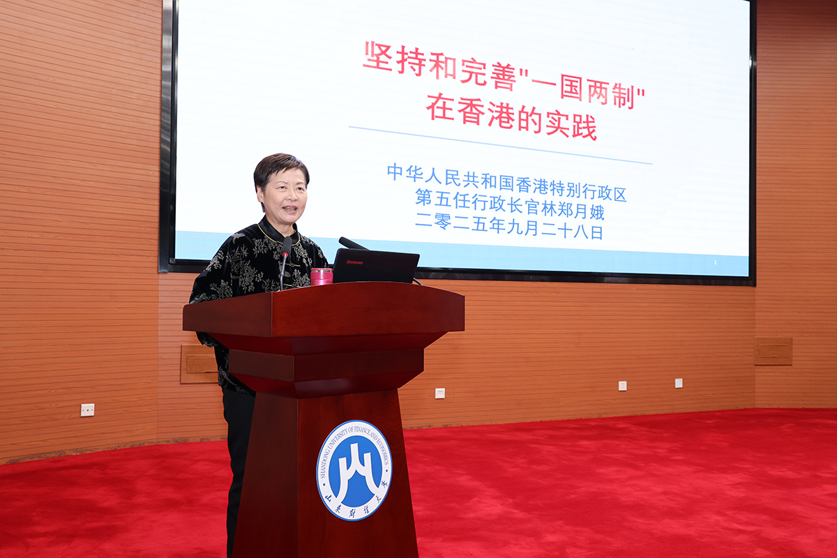 随后,林郑月娥女士在图书馆报告厅作题为《坚持和完善“一国两制”在香港的实践》的专题讲座。她结合自身职业经历,从历史回顾、实践经验和切身体会出发,阐述了“一国两制”作为香港保持长期繁荣稳定的最佳制度安排、必须长期坚持的重大意义。详细介绍了香港特区的宪制秩序、香港特区行政长官的宪制地位,坚持和完善“一国两制”的实践与新推进,并结合打造国际高端人才集聚高地介绍了香港特区的最新人才政策措施,分享了她对香港未来发展的坚定信心,以及香港如何发挥独特优势,更好融入国家发展大局的思考。专题讲座立意深远、内容丰富,不仅是一场学术讲座,更是一堂生动的国情教育课,让与会师生更加坚定了对“一国两制”的信心和决心。