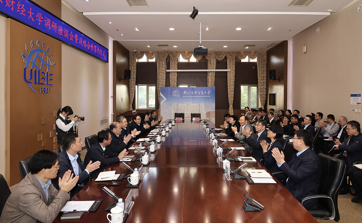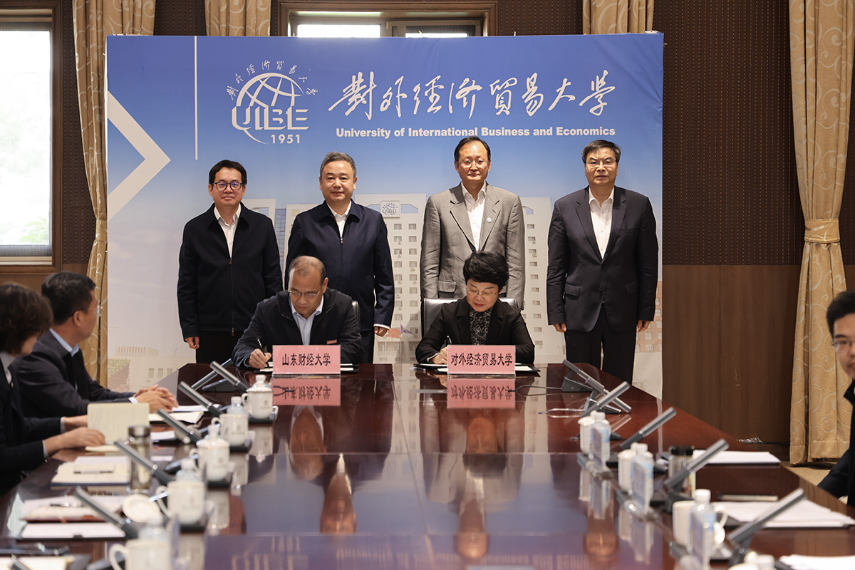 10月14日上午,山东财经大学与对外经济贸易大学战略合作协议签约仪式在对外经济贸易大学举行。对外经济贸易大学党委书记黄宝印、校长赵忠秀,山东财经大学党委书记查玉喜、校长洪俊杰出席签约仪式。对外经济贸易大学副校长兼党委副书记文君,党委常委、党委组织部部长、党委人才工作办公室主任李洁,党委常委、党委宣传部部长陶好飞参加签约仪式。