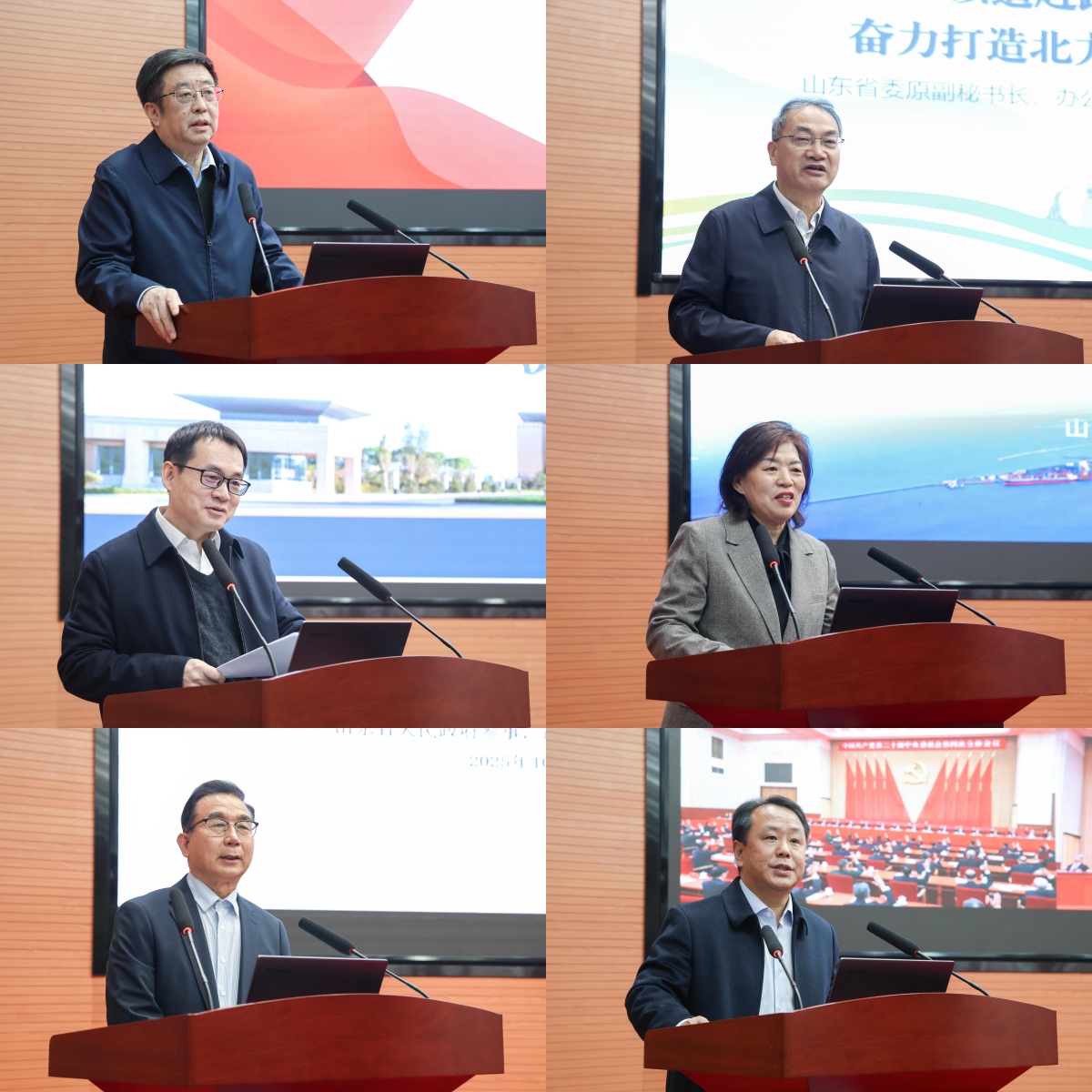 主旨报告环节分两阶段进行。第一阶段由张红霞主持。马海涛在“锚定国家战略需求,打造中国特色新型智库”的发言中,强调了新型智库建设必须紧密对接国家战略,以科学决策咨询为根本使命,为发展提供坚实的智力支撑;陈迪桂以“以追赶跨越的坚韧和勇毅,奋力打造北方地区经济重要增长极”为题,阐释了山东必须以奋进者姿态,在推动北方经济振兴中担当关键角色;张中英在“以投资新逻辑激活高质量发展新引擎”的发言中,深刻论述了必须推动投资从规模扩张向质效提升转变,以科技创新、绿色低碳等新投向激活内生增长动力;张述存在“推动ESG体系建设 助力山东经济高质量发展”的报告中,指出构建ESG体系是山东实现绿色转型、提升长期竞争力的内在需要与制度保障。