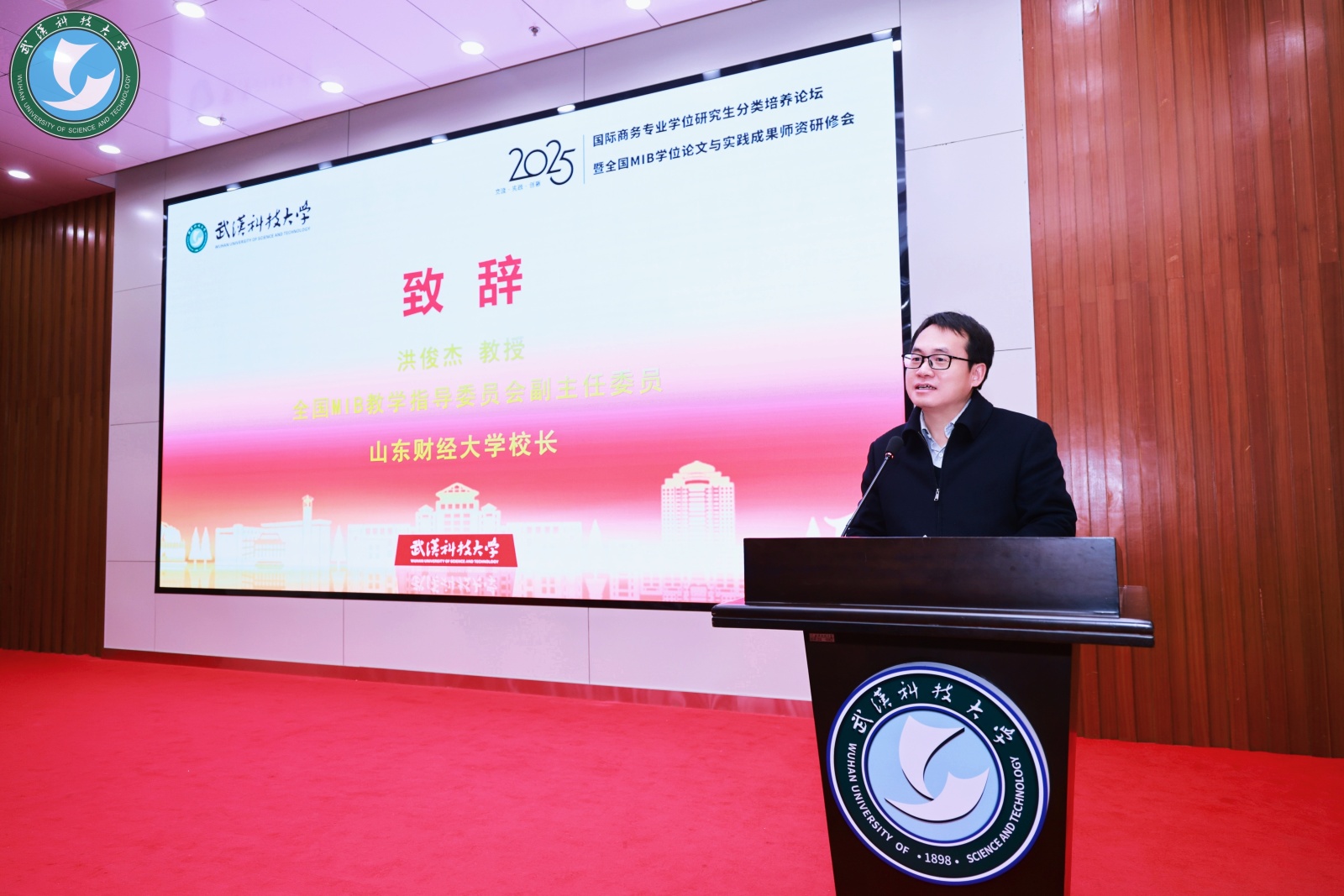 11月29日,2025年全国国际商务专业学位研究生(MIB)学位论文与实践成果师资研修会在武汉科技大学隆重召开,共话国际商务人才培养新路径。对外经济贸易大学党委书记黄宝印、武汉科技大学校长吕勇、商务部国际贸易经济合作研究院党委书记兼院长王雪坤,中国学位与研究生教育学会副会长张淑林等国内知名专家学者出席会议。校长洪俊杰出席会议并致辞。