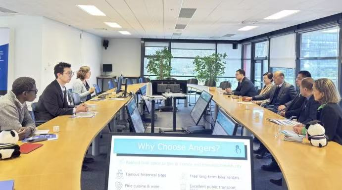 在法国昂热大学,与GRΑNEM经济管理实验室主任弗雷德里克·谢多特等进行务实会谈。双方就学生联合培养、教师互访授课、科研项目合作等方面达成一系列合作意向,并同意将尽快签署两校合作协议,建立长期稳固的合作关系。昂热大学是法国老牌国立综合性大学,创立于1080年,是全法国乃至全欧洲最古老的大学之一,该校在旅游管理、酒店管理、经济学及法律等领域享有较高声誉。