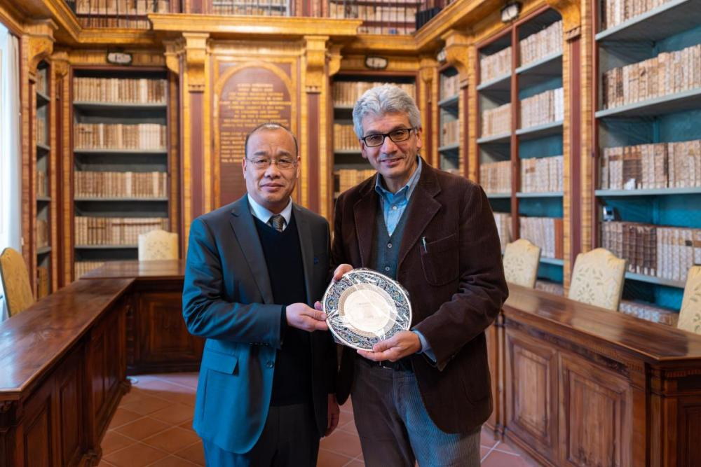在佩鲁贾大学,代表团受到副校长阿切奥·马基奥尼利等近10位院长及知名教授的热情接待,双方一致同意,以原有法学专业良好合作及“中意经贸与法律研究中心”为基础,建立全方位合作关系,在学生联合培养、合作科研、师生互换等项目达成合作共识,并签署两校伊拉斯谟合作协议。佩鲁贾大学成立于1308年,该校经济和法律专业享有盛名,现代会计之父、复式记账创始人卢卡·帕乔利曾任教于此。