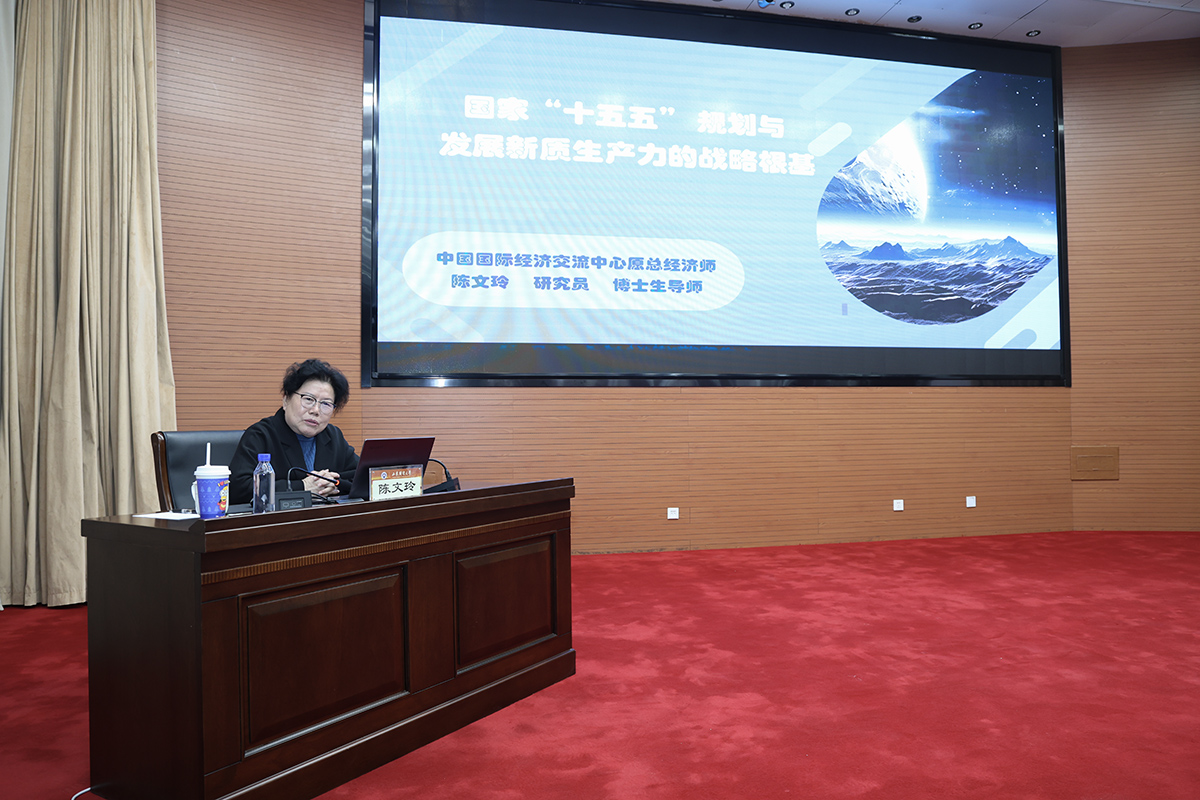 12月18日下午,由我校主办,科研处、学生工作部、北京研究院、中日韩研究院联合承办的“燕山大讲坛”(第三十一期)在燕山校区图书馆报告厅成功举行。中国国际经济交流中心学术委员会副主任、原总经济师陈文玲应邀作了题为“‘十五五’规划与中国发展新质生产力的战略根基”的学术报告。校长洪俊杰主持本期讲坛。