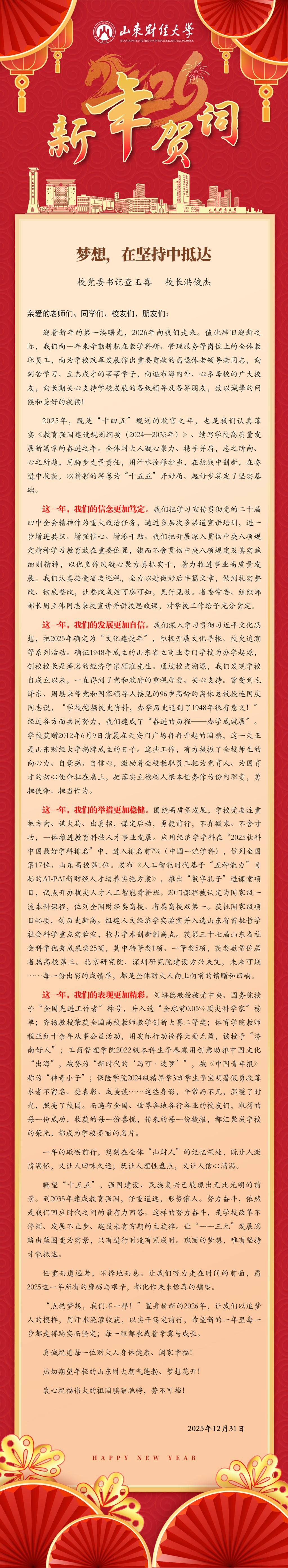 山东财经大学2026年新年贺词:梦想,在坚持中抵达