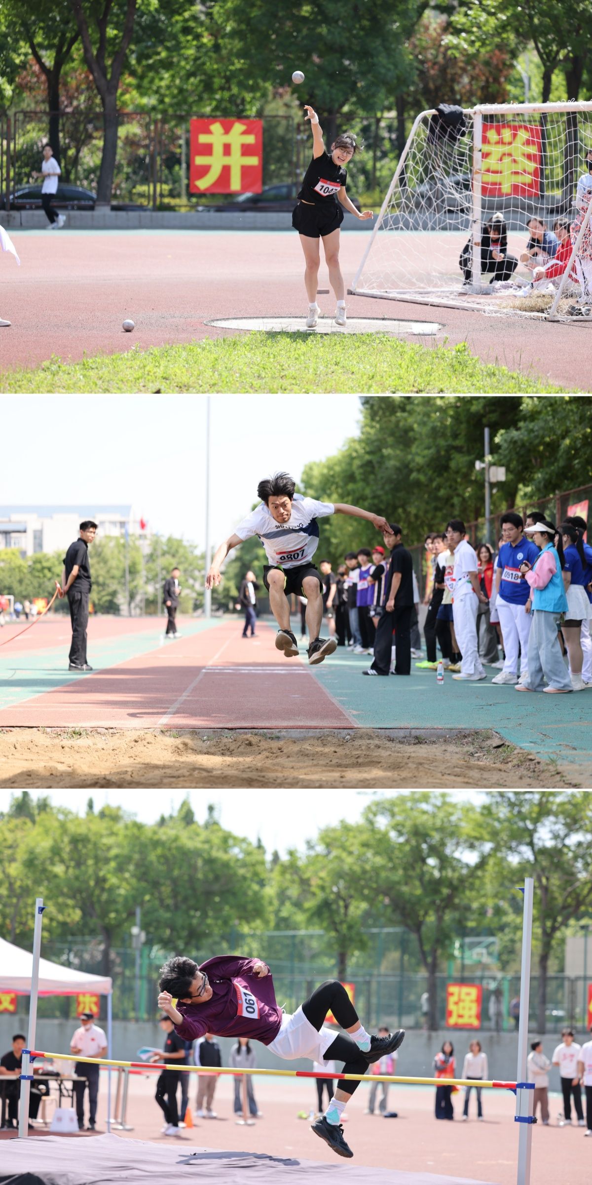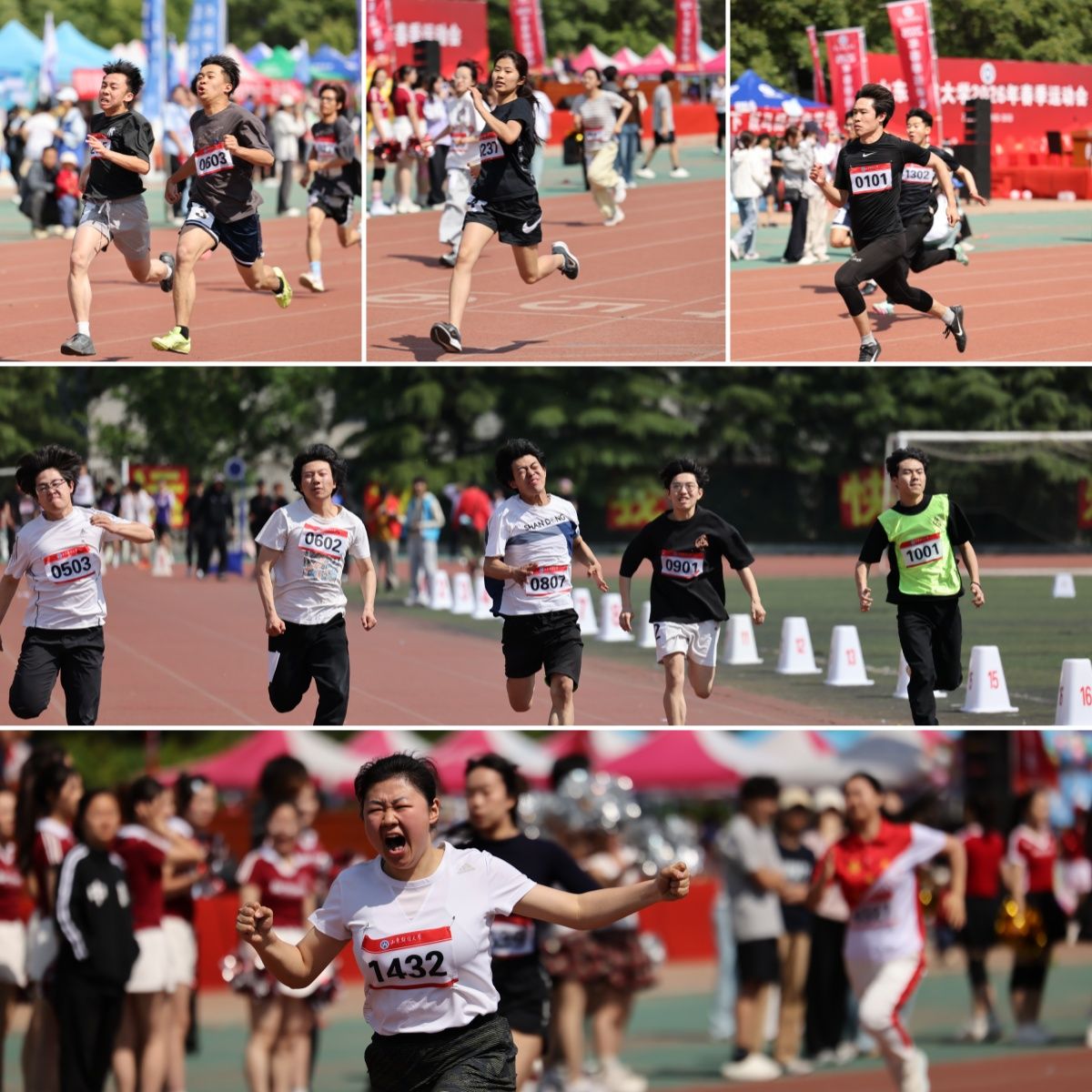 红色跑道上,径赛选手目光坚毅、奋力冲刺,奔跑的身姿诠释必胜的信念。夺得男子3000米决赛冠军后,经济学院2024级本科生王新建难掩激动。此前,他已在男子1500米决赛中摘得桂冠。“两次为学院拿下冠军,我很骄傲!没有辜负赛前速耐、间歇跑等高强度训练。”接力赛场上,队员们相互鼓劲、默契配合,共同奔向终点。2025级本科生骆馨怡所在的公共管理学院代表队斩获女子4×100米冠军,赛后她表示,荣誉从来不是个人的高光,而属于每一位拼搏的队友。